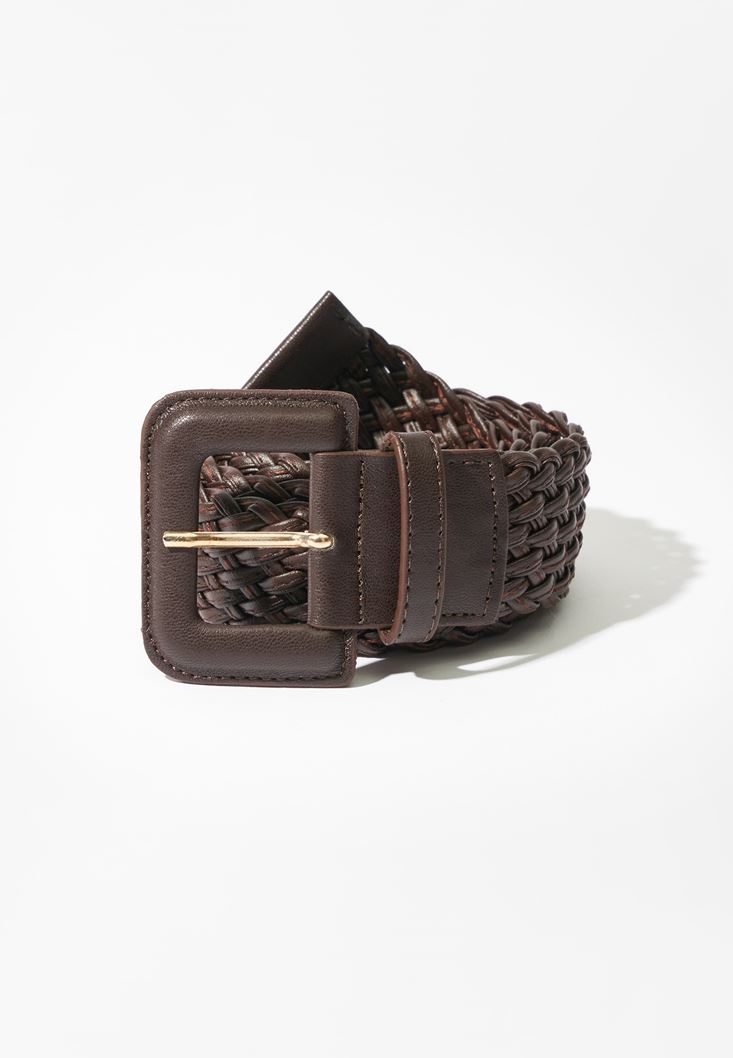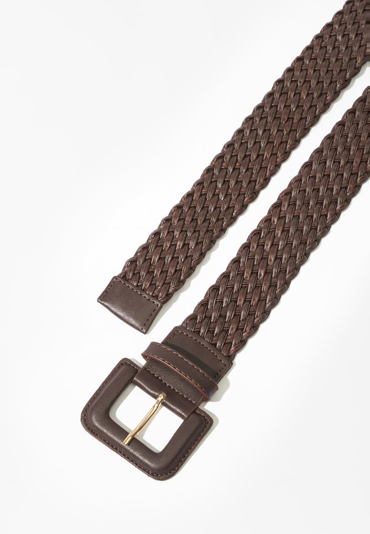 Kahverengi Örgü Detaylı Kemer