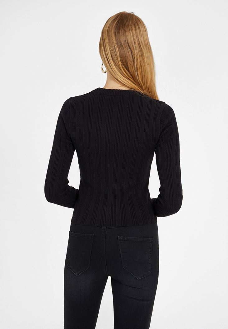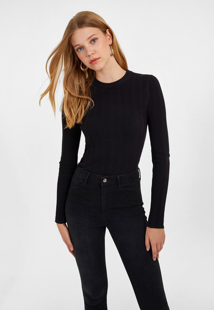• Bayan Siyah Örgü Detaylı Kısa Kazak
