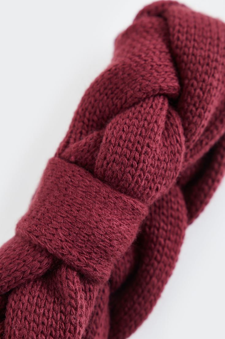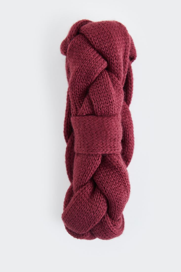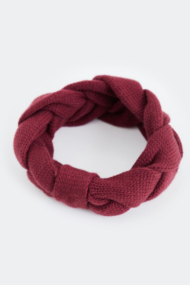 • Bayan Bordo Örgü Detaylı Saç Bandı