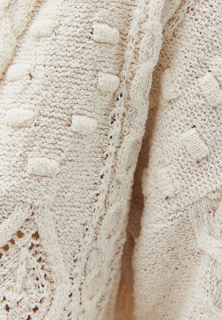 • Bayan Krem Örgü Detaylı Triko Hırka