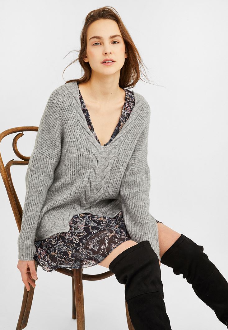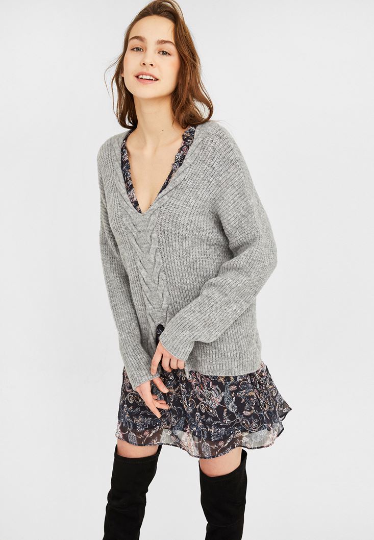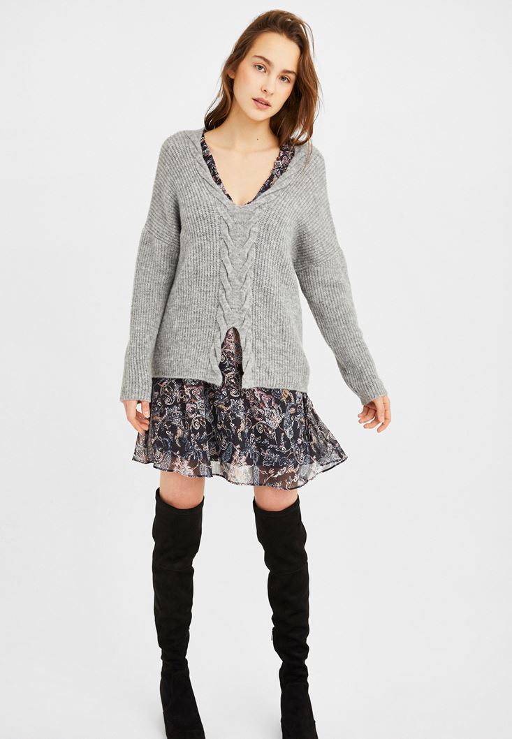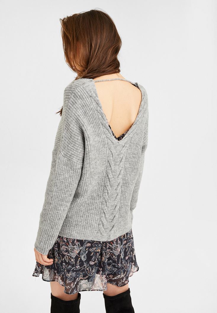 • Bayan Gri Örgü Detaylı Triko Kazak