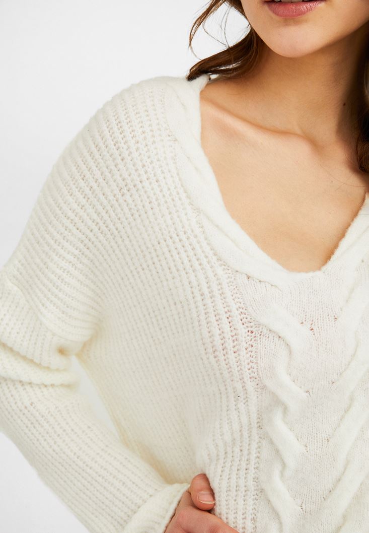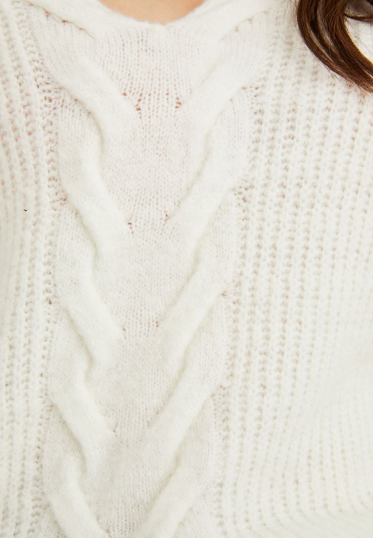 • Bayan Krem Örgü Detaylı Triko Kazak