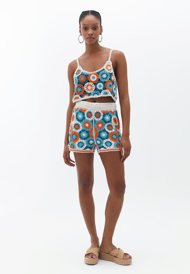 • Bayan Çok Renkli Orta Bel Ajurlu Şort