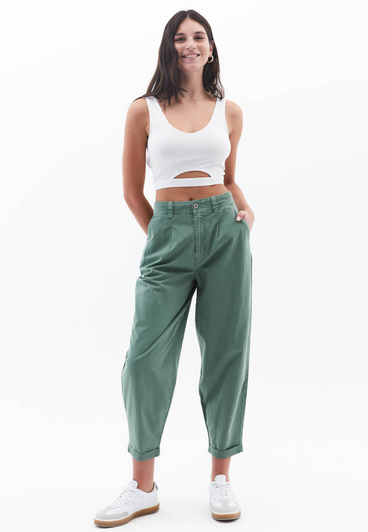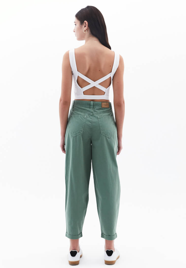 • Bayan Yeşil Orta Bel Balon Pantolon