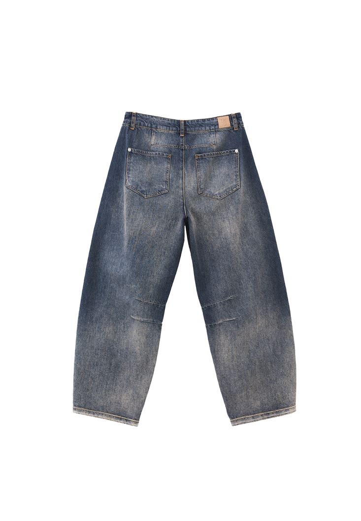 %100 pamuklu denim, orta bel, bedenden uzak barrel fit, yıkamalı görünüm, önü ve arkası ikişer cepli.