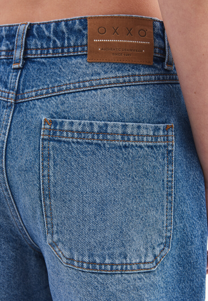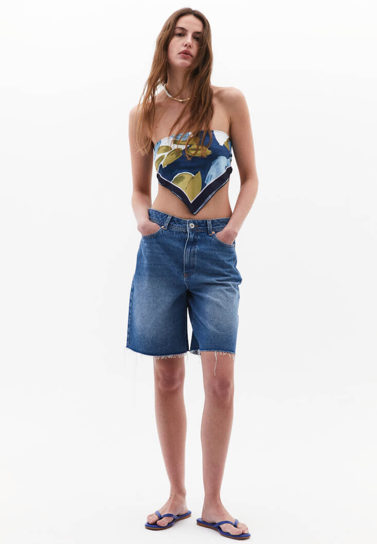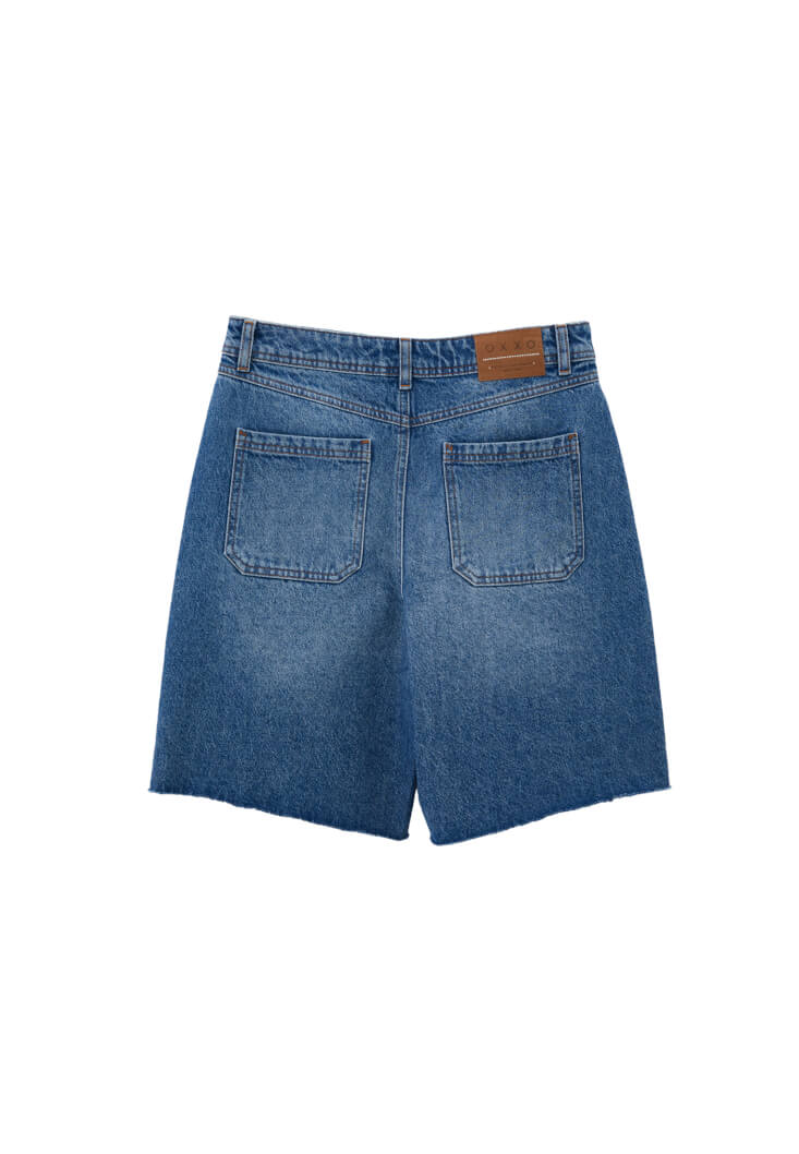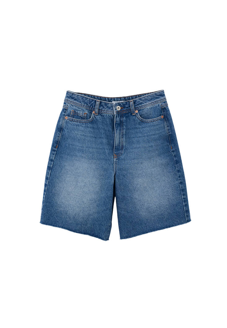 %100 pamuklu denim, bedene yakın rahat fit, orta bel, önü ve arkası ikişer cepli, midi bermuda kesim, paça ucu cut out detaylı.