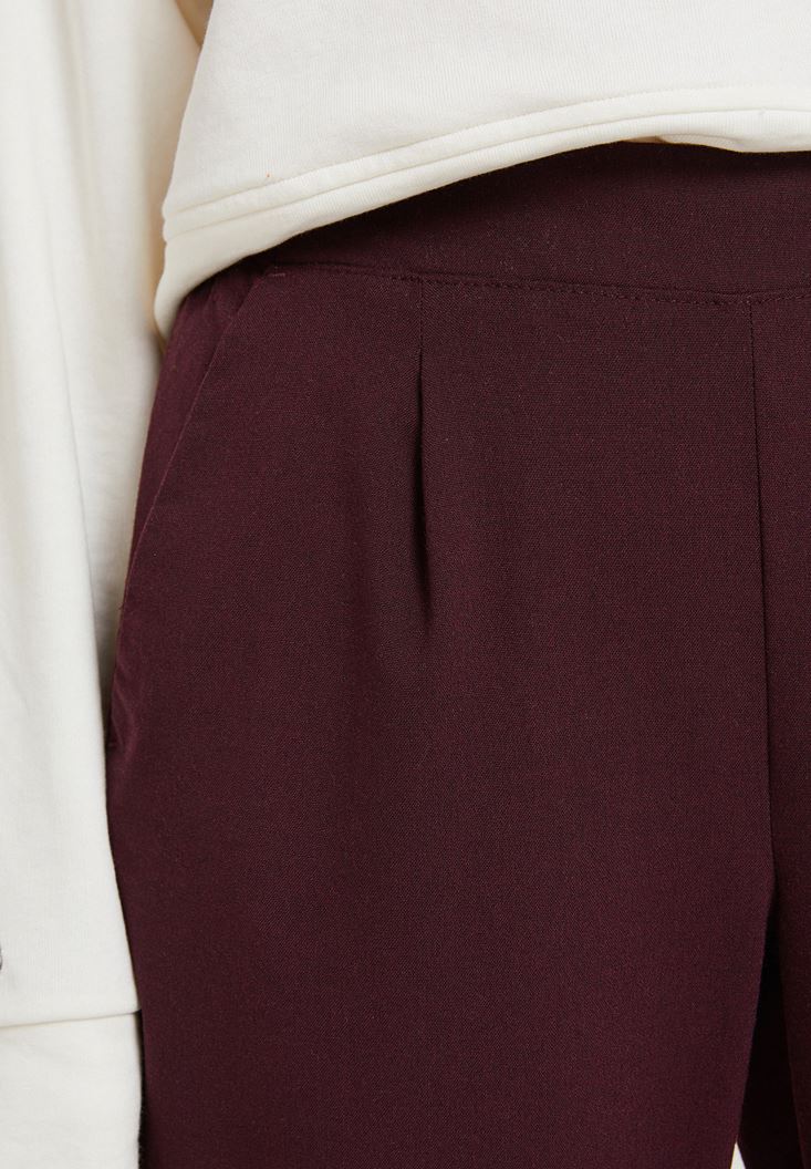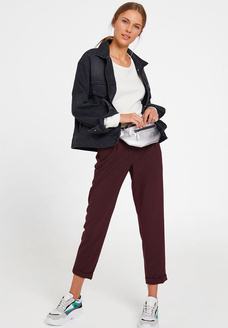 Orta Bel Bol Pantolon modeli kombinlerinde rahatlığı ve şıklığı mutlaka birlikte elde etmek isteyenlerin tercih edebileceği pantolon modelleri arasında yer alıyor. Pantolonun sahip olduğu orta yükseklikteki bel kesimi bu parçayı farklı üstlerle kullanmaya olanak sağlıyor. Bel kesiminin sahip olduğu yükseklik pili detayları ile desteklenerek nispeten bol kesime sahip olan pantolonun duruşu güçlendiriliyor. Pantolon modelinin bilek üzerindeki paça boyu bu tasarımı farklı ayakkabı modelleri ile kombinlemeyi mümkün kılıyor. Paça kesiminde kullanılan katlı kumaş detay tasarımın duruşunu destekliyor. Sahip olduğu viskon dokunun sağladığı nefes alan yapısı ile hareketli günlerinize başarılı bir şekilde eşlik eden tasarım, OXXO’nun enerjisini ve ruhunu ön plana çıkardığı pantolon modelleri arasında dikkat çekiyor.