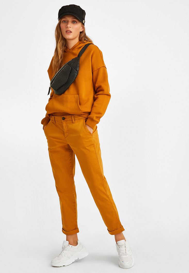 Orta Bel Boru Paça Pantolon modeli, capcanlı renkleri ve pamuk içerikli kumaşıyla göz kamaştıran bir görünümle sizlere ulaşıyor. Katlamalı paça detayı ile genç ve dinamik bir duruşla karşınıza çıkan kadın boru paça modeli, enerjinizi yükseltmek için sizinle buluşmayı bekliyor. kadın sweat modelleri veya şık bluz modelleri ile rahatlıkla kullanabileceğiniz kadın pantolon modeli sayesinde, tarzınız her ortamda birkaç adım öne çıkıyor. Kadın orta bel boru paça pantolon modeli sizi canlılık içeren kombinlere davet ederken, rahat duruşu ve konforuyla kendine hayran bırakmaya hazır görünüyor. Oxxo’nun renkleri ve kalıplarıyla her sezon çok sevilen kadın pantolon modelleri, günlük hayatınızda keyifle kullanacağınız tasarımları sizlere sunmaya devam ediyor.