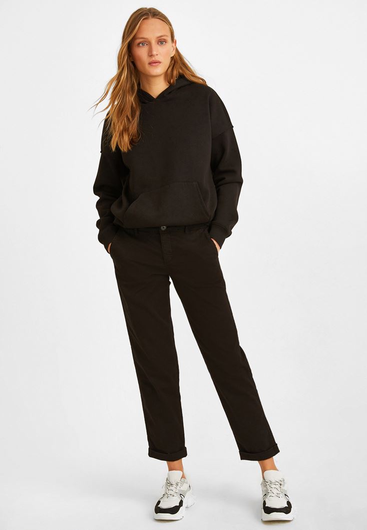 Bol kesim pantolon, bedene daha yakın bir görünüm için 1 beden küçük tercih edebilirsiniz.