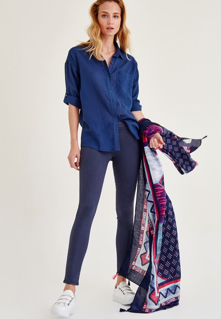 • Bayan Lacivert Orta Bel Dar Bilek Paça Skinny Pantolon