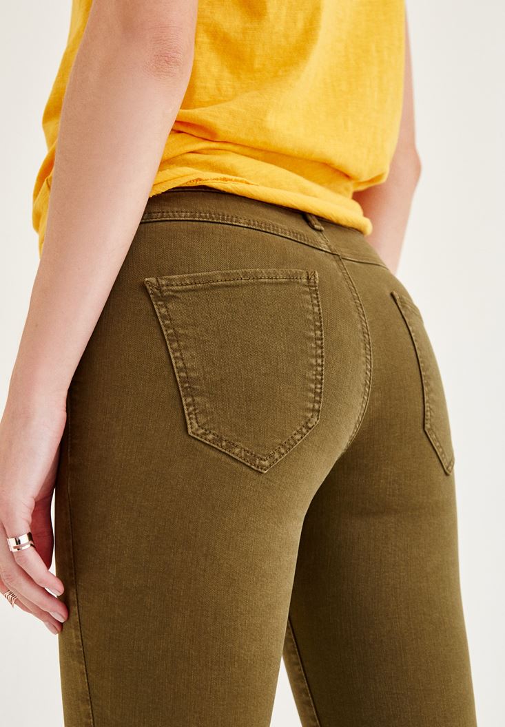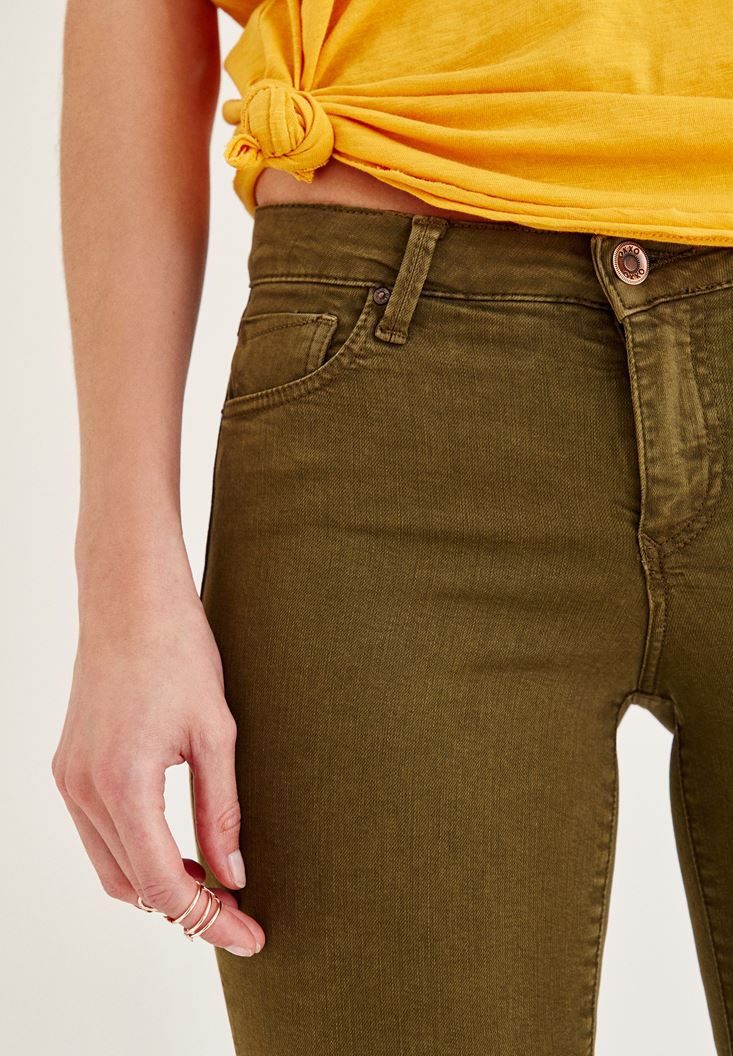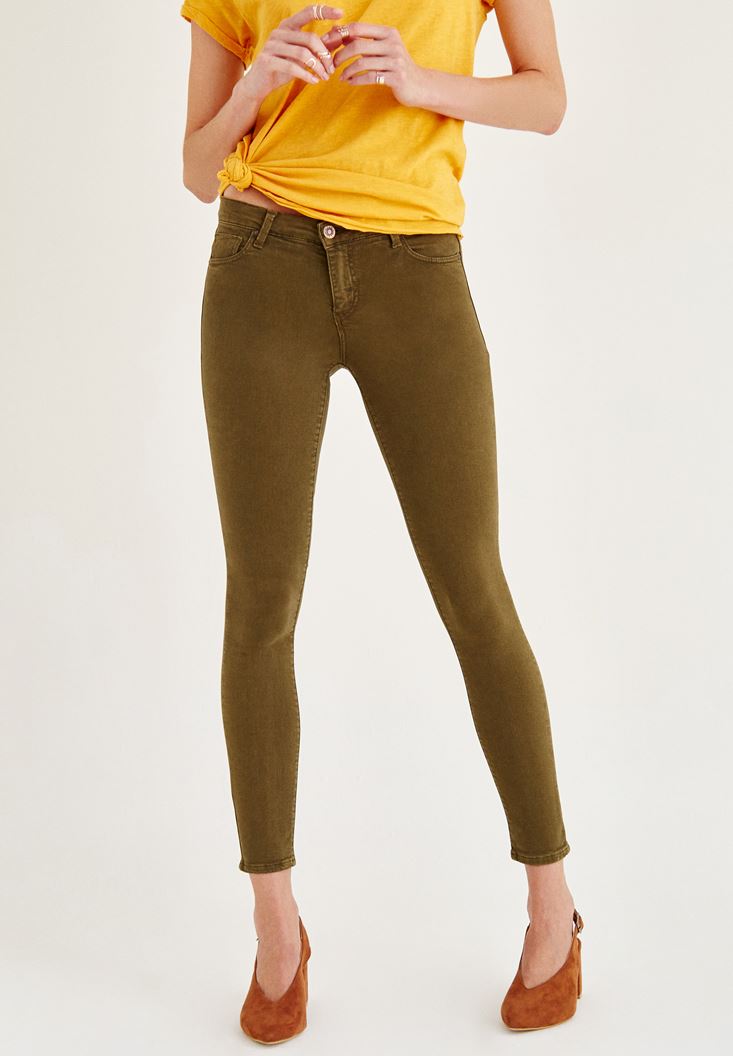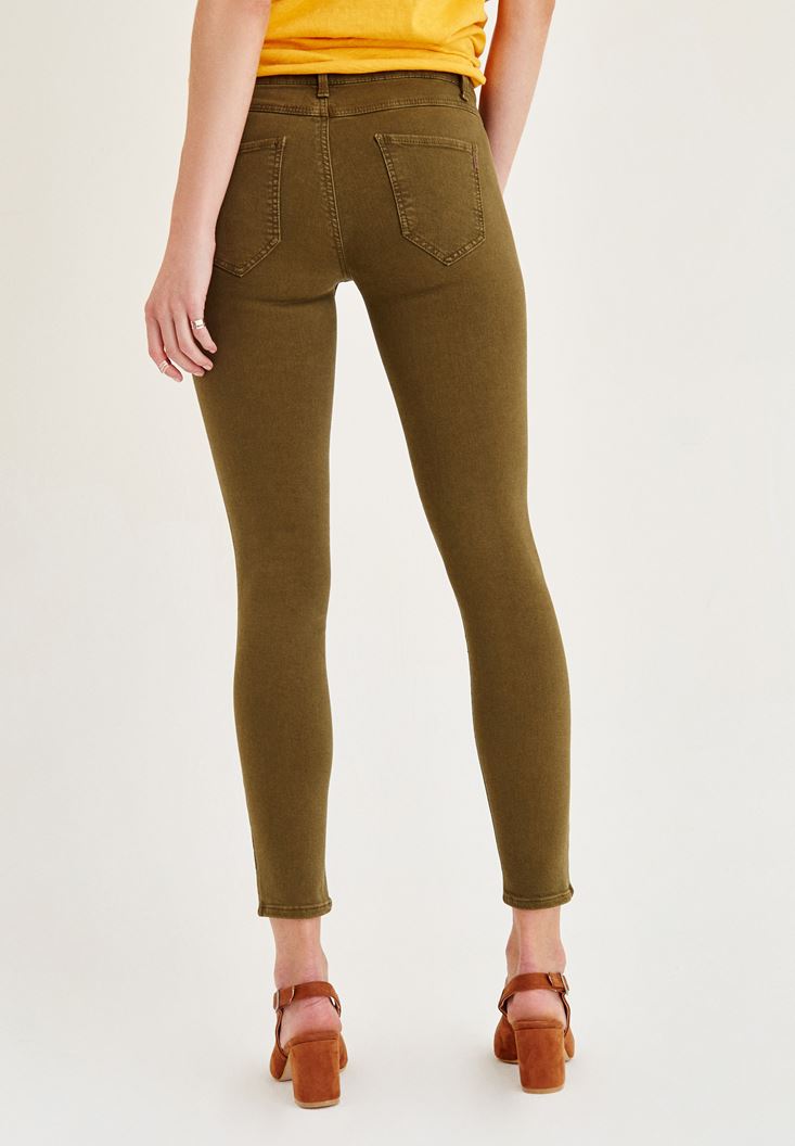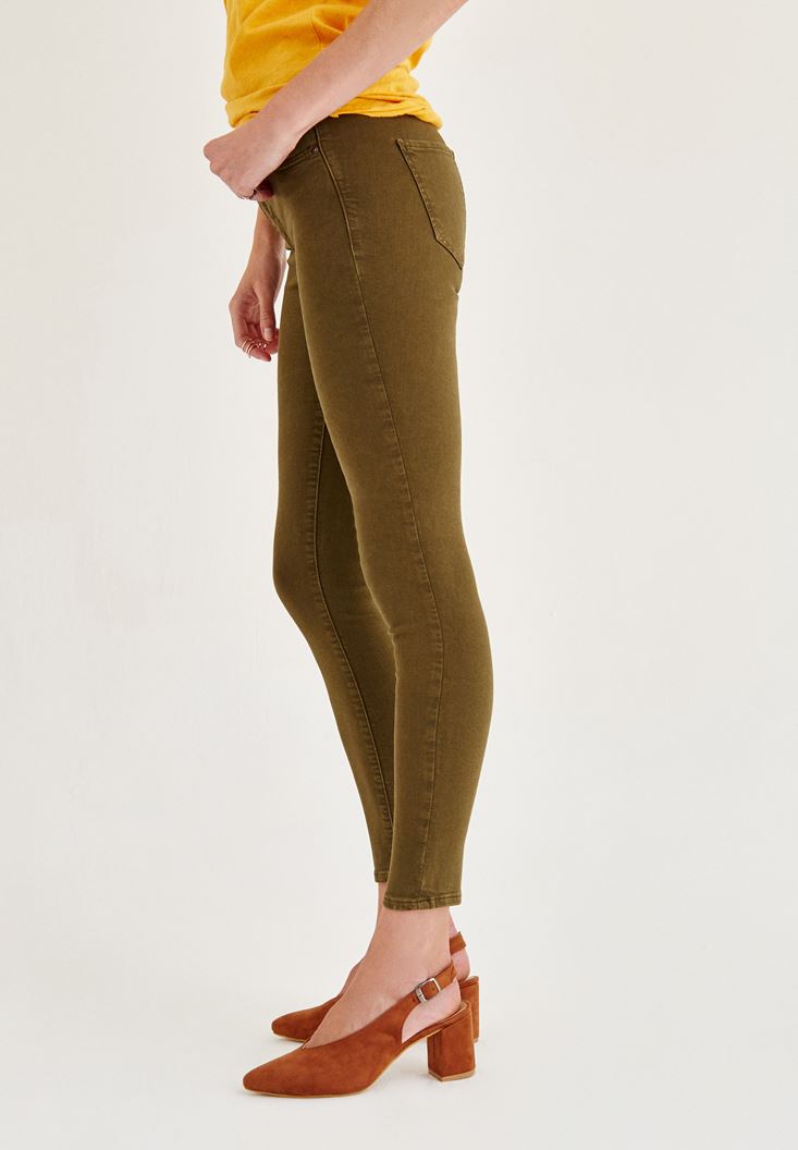Yeşil Orta Bel Dar Bilek Paça Skinny Pantolon