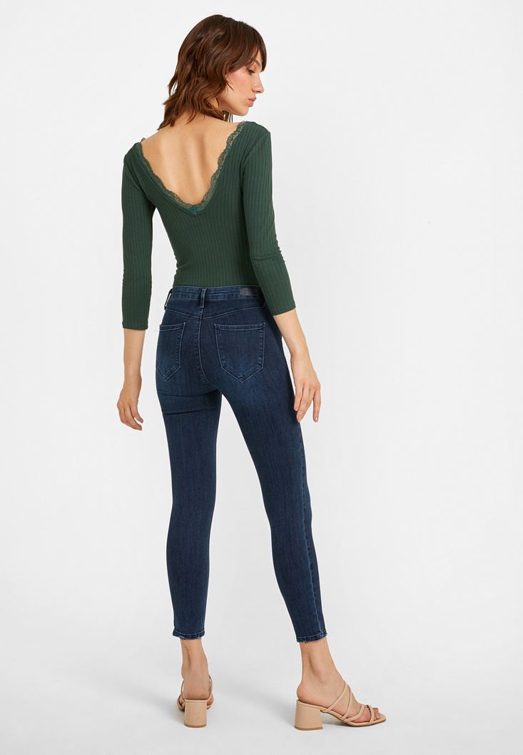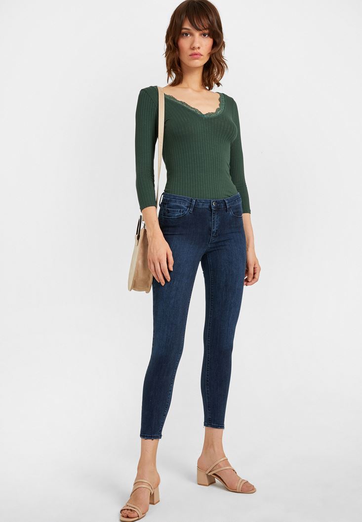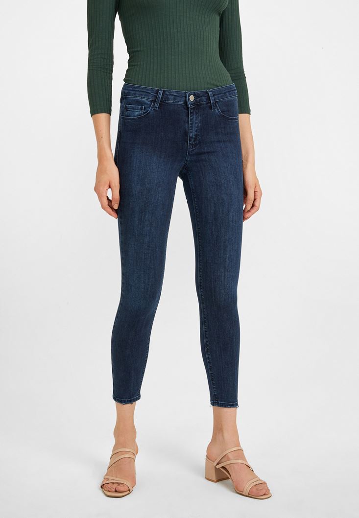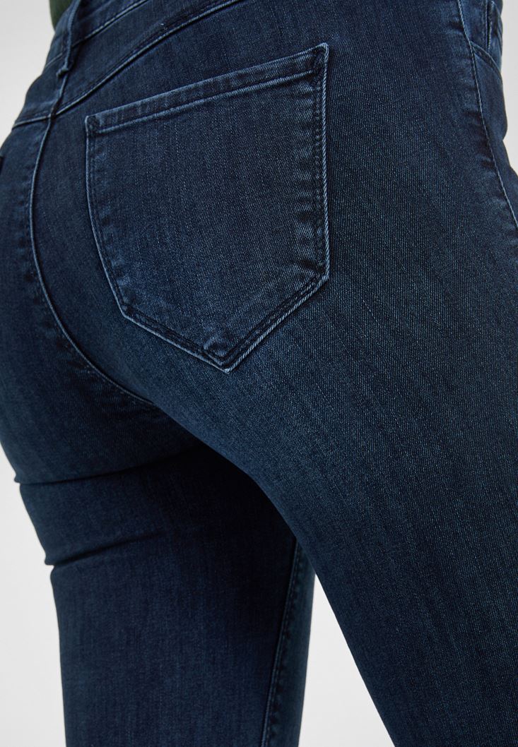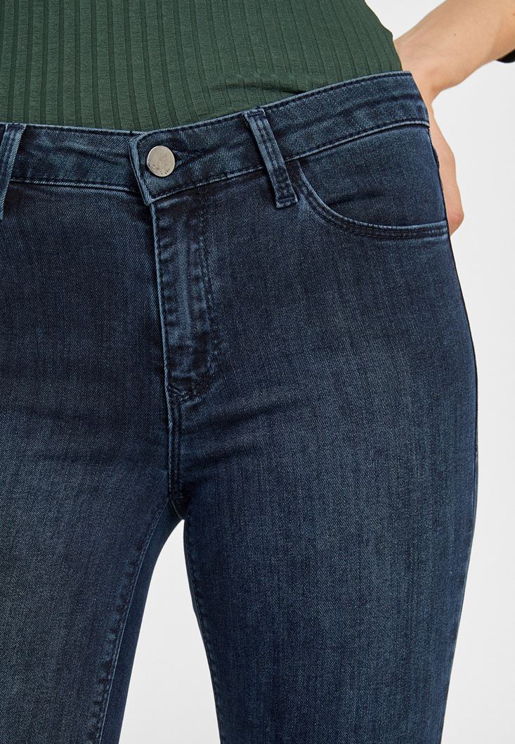 Mavi Orta Bel Dar Paça Pantolon