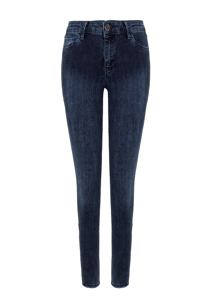 • Bayan Mavi Orta Bel Dar Paça Pantolon