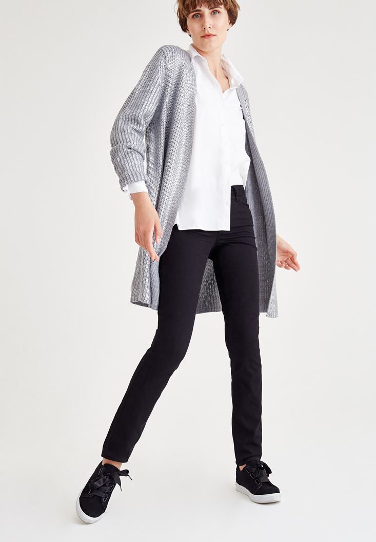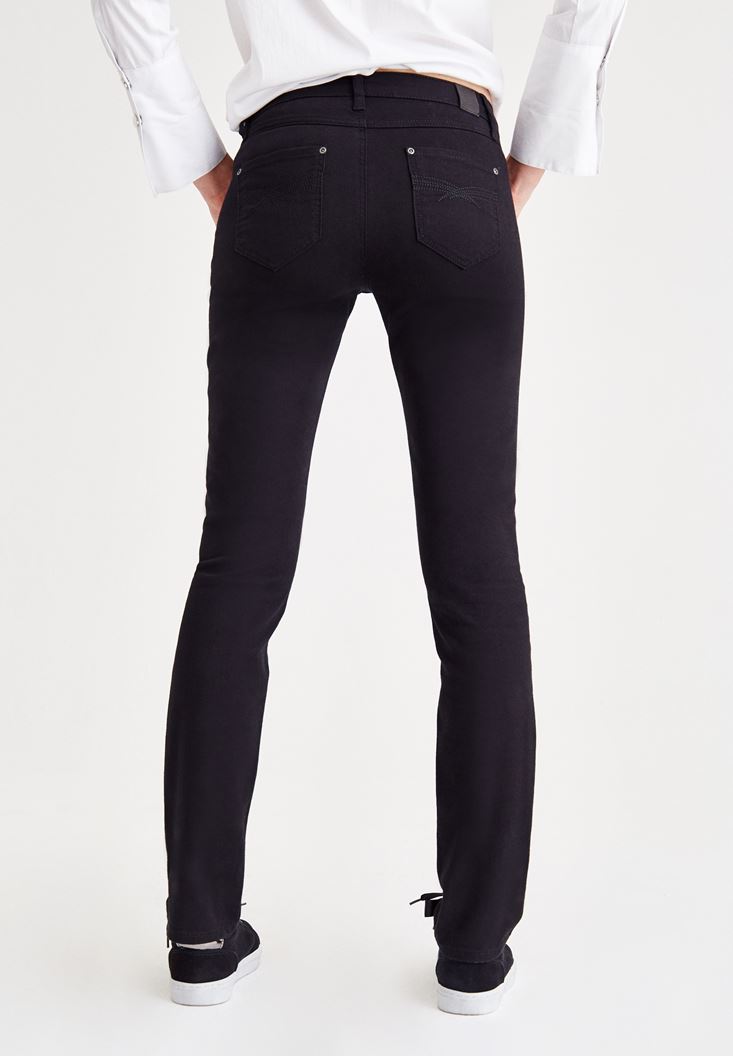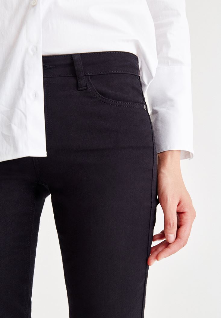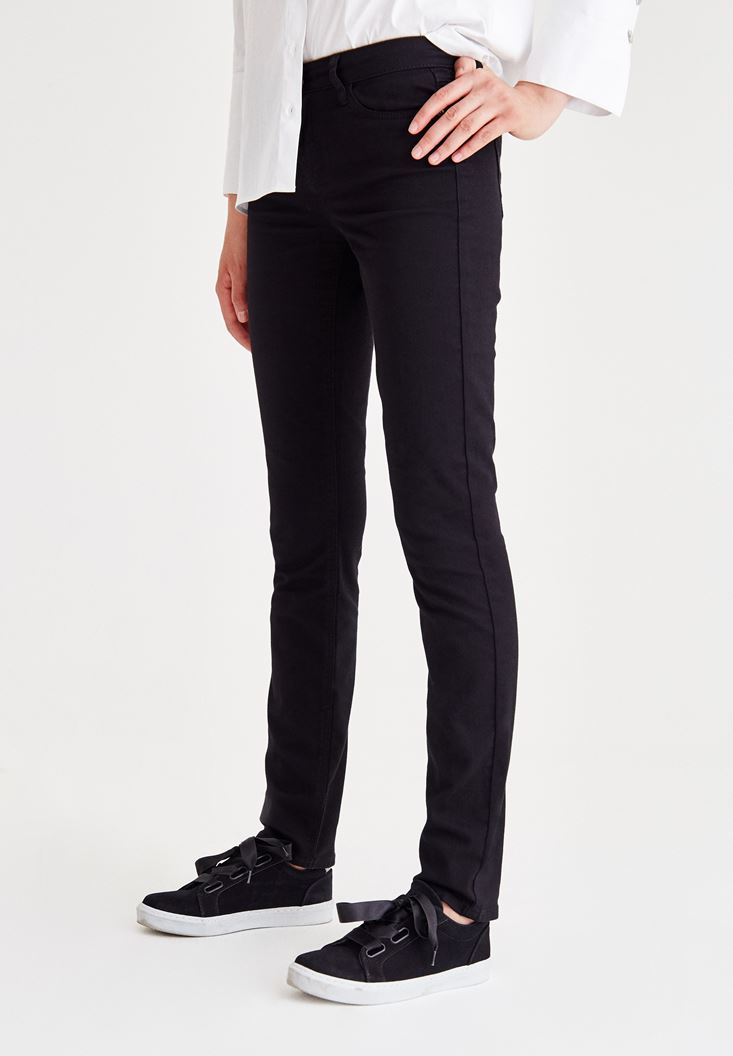 Siyah Orta Bel Dar Paça Slim Pantolon
