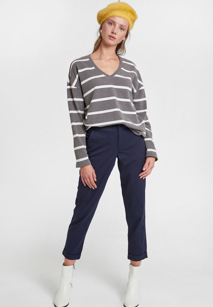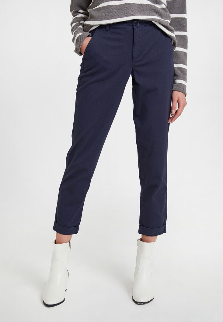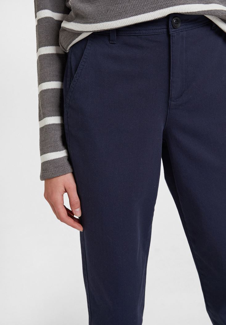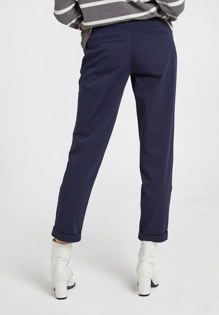 Lacivert Orta Bel Detaylı Boru Paça Pantolon