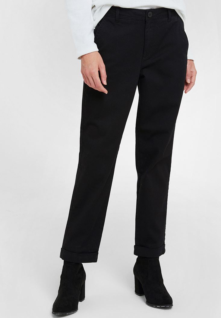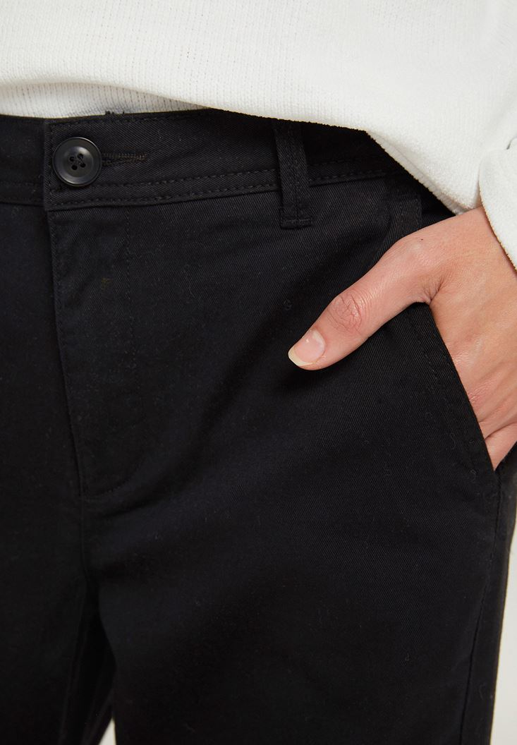 • Bayan Siyah Orta Bel Detaylı Boru Paça Pantolon