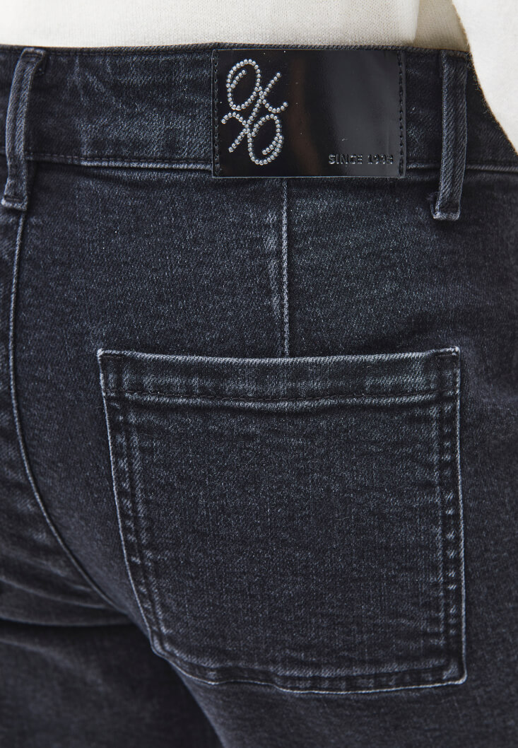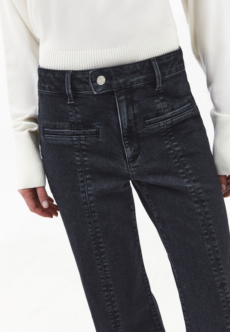 • Bayan Siyah Orta Bel Flare Denim Pantolon