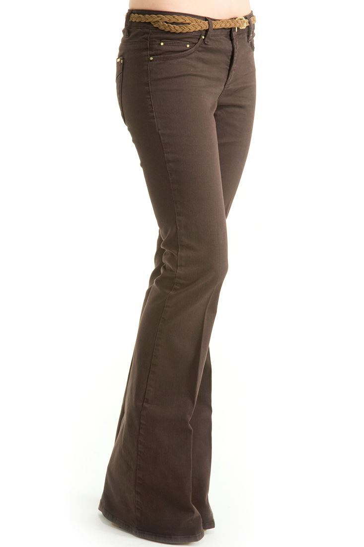 • Bayan Kahverengi Orta Bel İspanyol Paça Pantolon