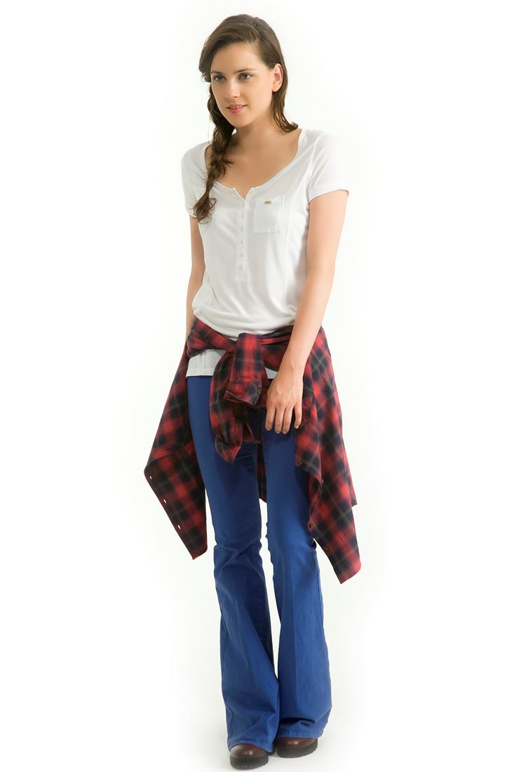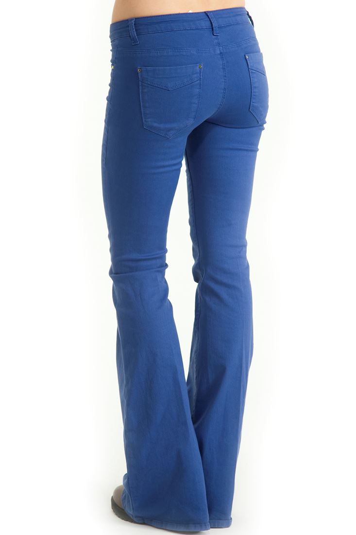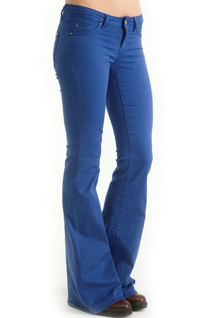 • Bayan Mavi Orta Bel İspanyol Paça Pantolon