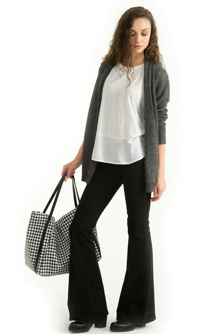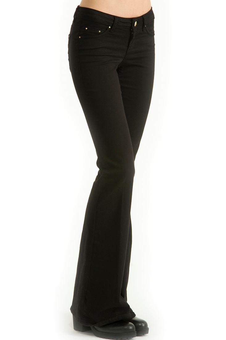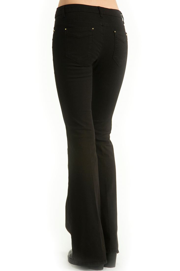 • Bayan Siyah Orta Bel İspanyol Paça Pantolon