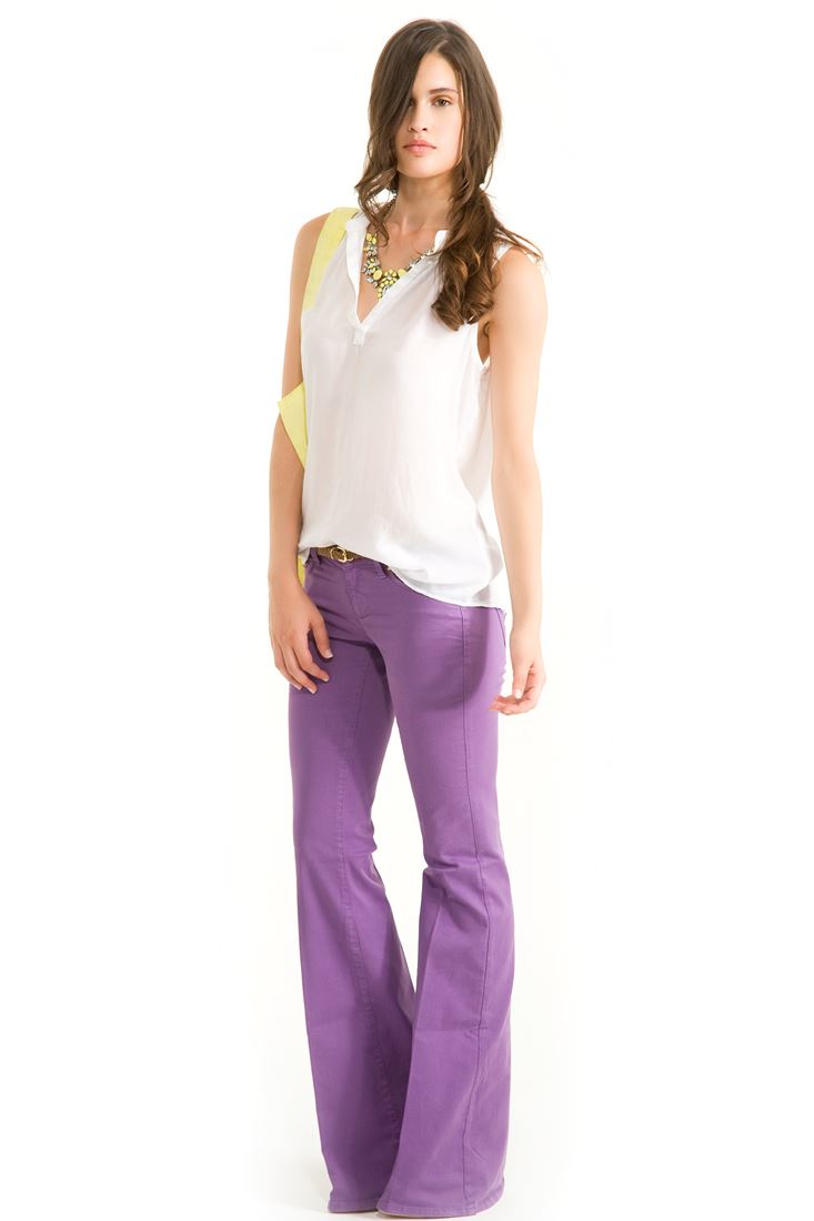 • Bayan Mor Orta Bel İspanyol Paça Pantolon