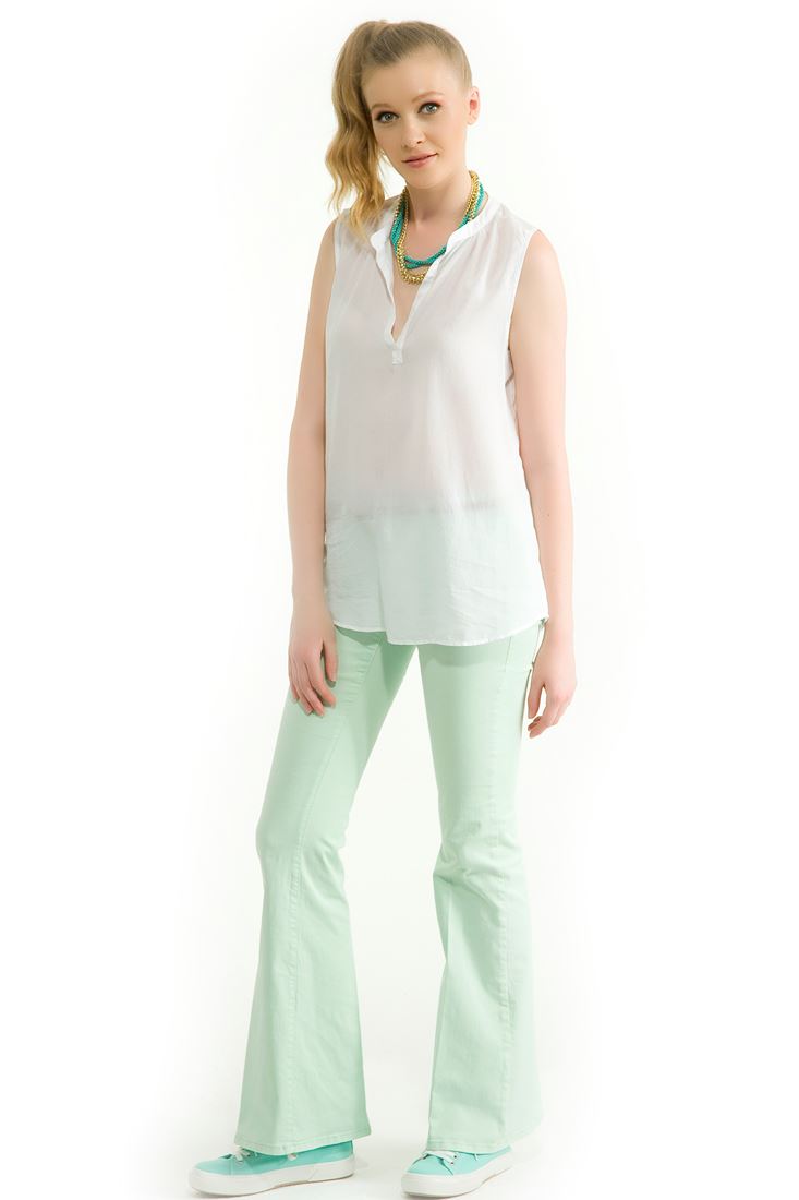 Yeşil Orta Bel İspanyol Paça Pantolon