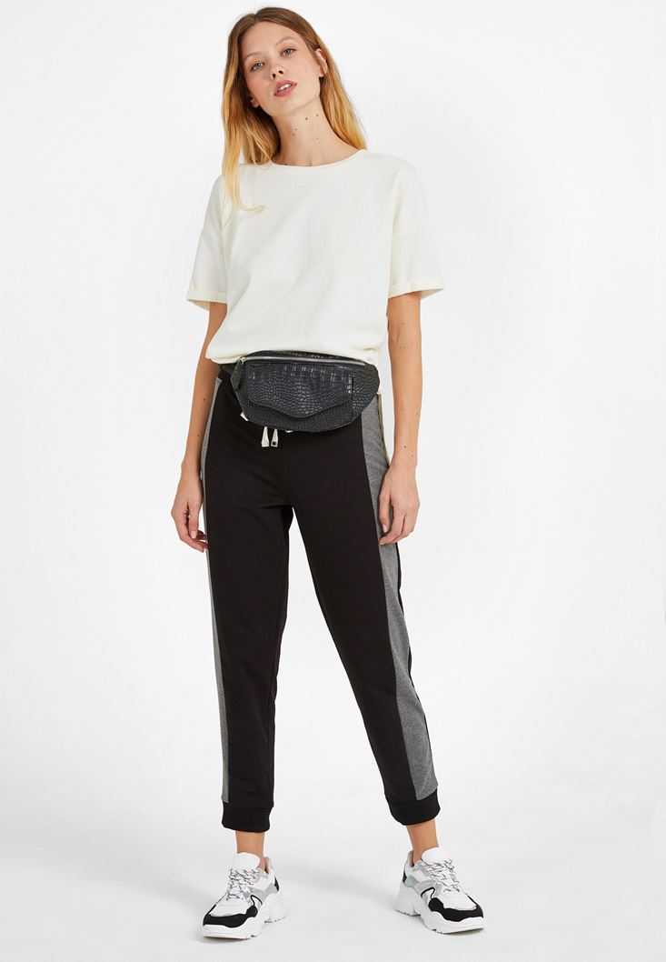 Orta Bel Jogger Pantolon tasarımı, pamuklu yumuşak dokusu ve hoş görünümü ile sizlere sunuluyor. kadın jogger pantolon modeli, lastikli paça ayrıntısı ve bel bağlama detayı ile rahat bir formda karşınıza çıkıyor. İki renk tonuyla oluşan uyumu sizlere sunan jogger pantolon modelinde gördüğünüz şerit detayı, fazlasıyla dikkat çekiyor. Sportif şıklığı yakalamak için ideal seçenek olan kadın jogger pantolon ile crop sweatshirt modelleri tercih ederek, stilinizi ön plana çıkarabilirsiniz. Kadın yüksek taban sneaker ayakkabılar ile muhteşem uyumlara ulaşacağınız orta bel jogger pantolon modeli sayesinde, tarzınıza iddialı bir hava katabilirsiniz. Oxxo'nun rahatlığın yanında sizleri trendlerle buluşturan kadın pantolon modelleri ile sokak stilinde emin adımlarla ilerleyebilirsiniz.