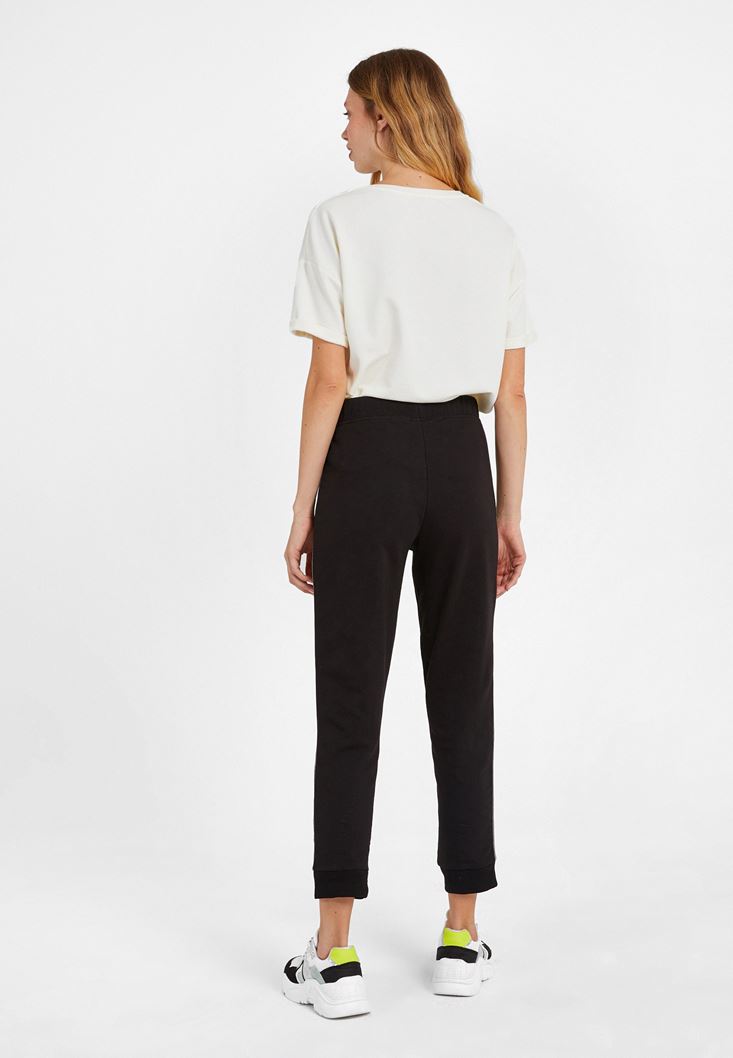 • Bayan Siyah Orta Bel Jogger Pantolon