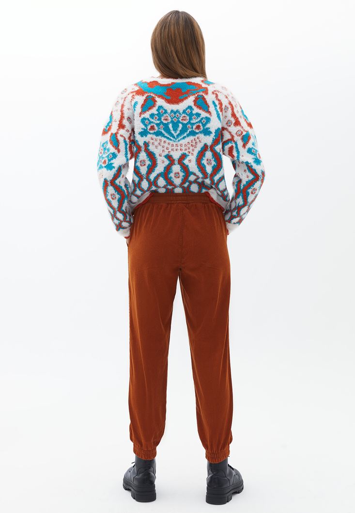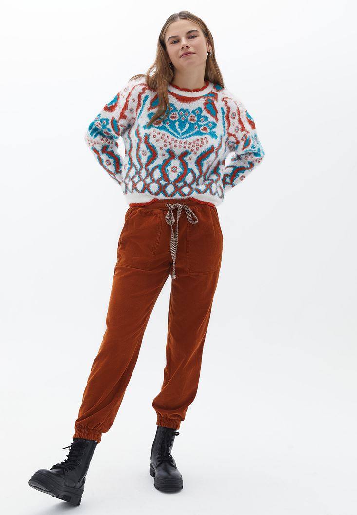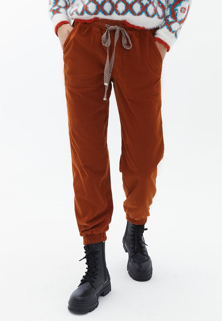 Kiremit Orta Bel Kadife Jogger Pantolon