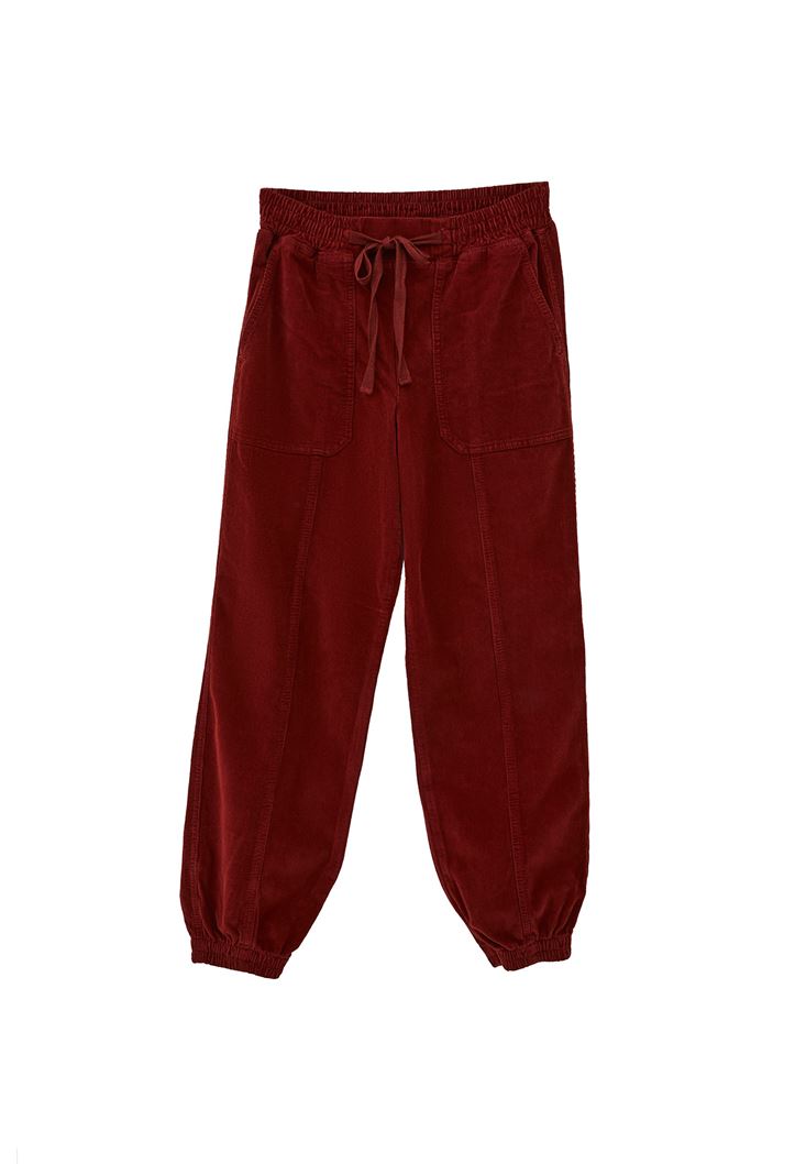 • Bayan Bordo Orta Bel Kadife Jogger Pantolon