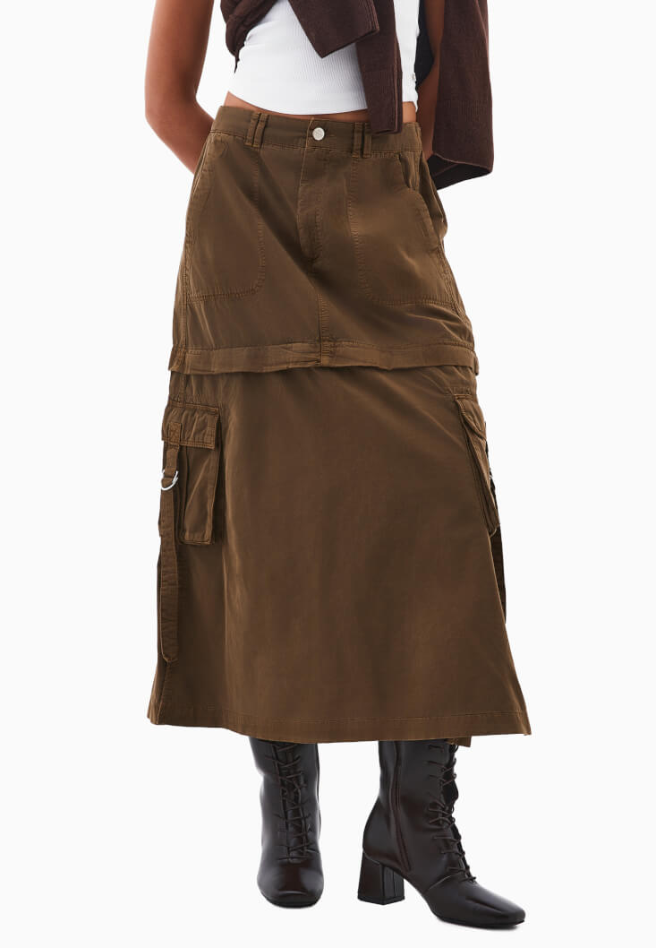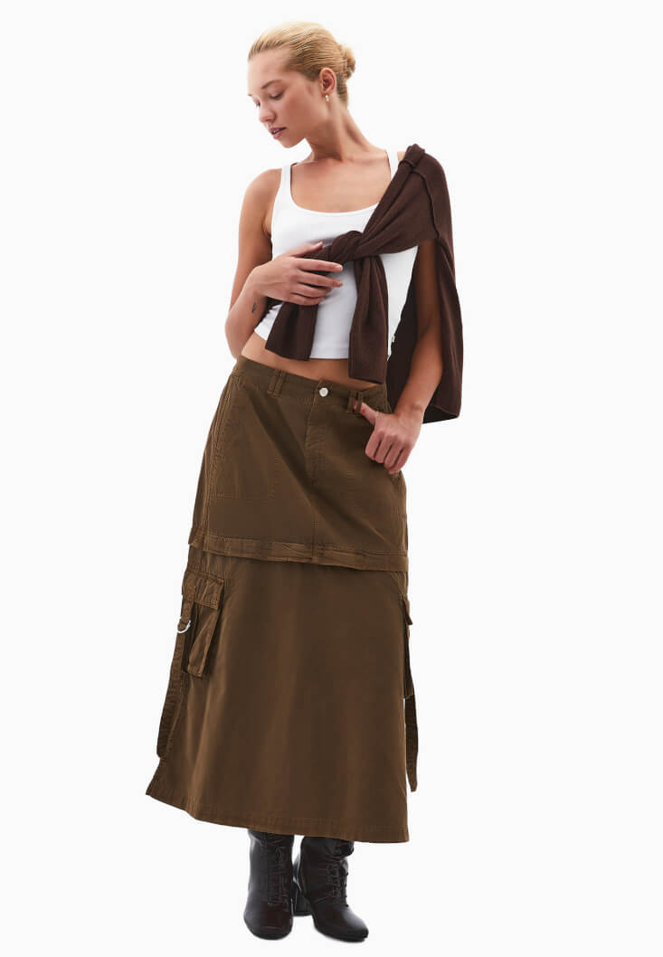 • Bayan Kahverengi Orta Bel Kargo Cepli Etek