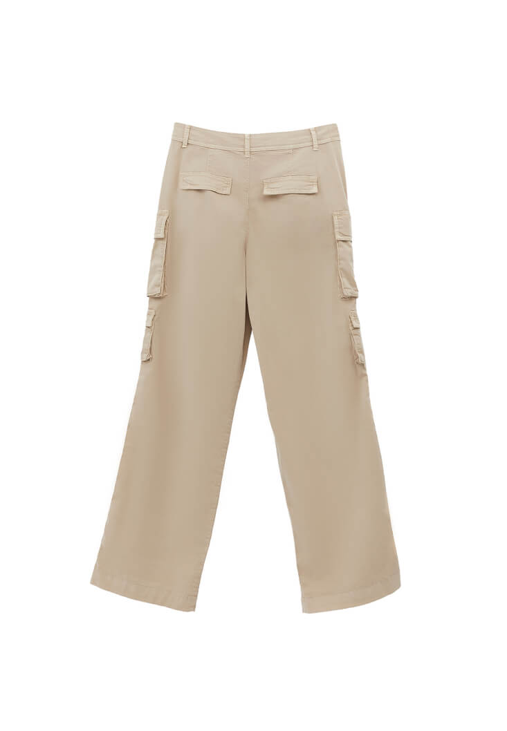 • Bayan Bej Orta Bel Kargo Cepli Pantolon