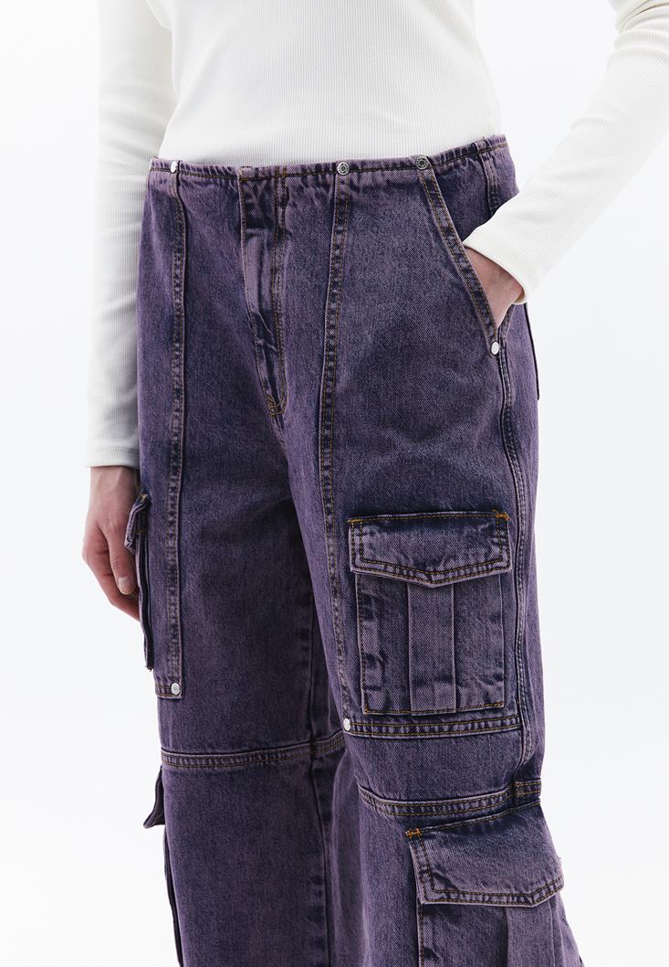 %100 pamuklu denim, orta bel, kargo cep detaylı, bedenden uzak rahat fit, bol paça, beden boyunca dikiş detaylı tasarım.