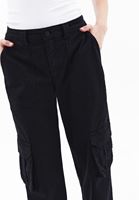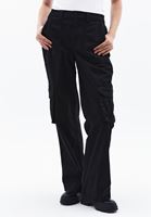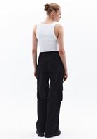 • Bayan Siyah Orta Bel Kargo Pantolon