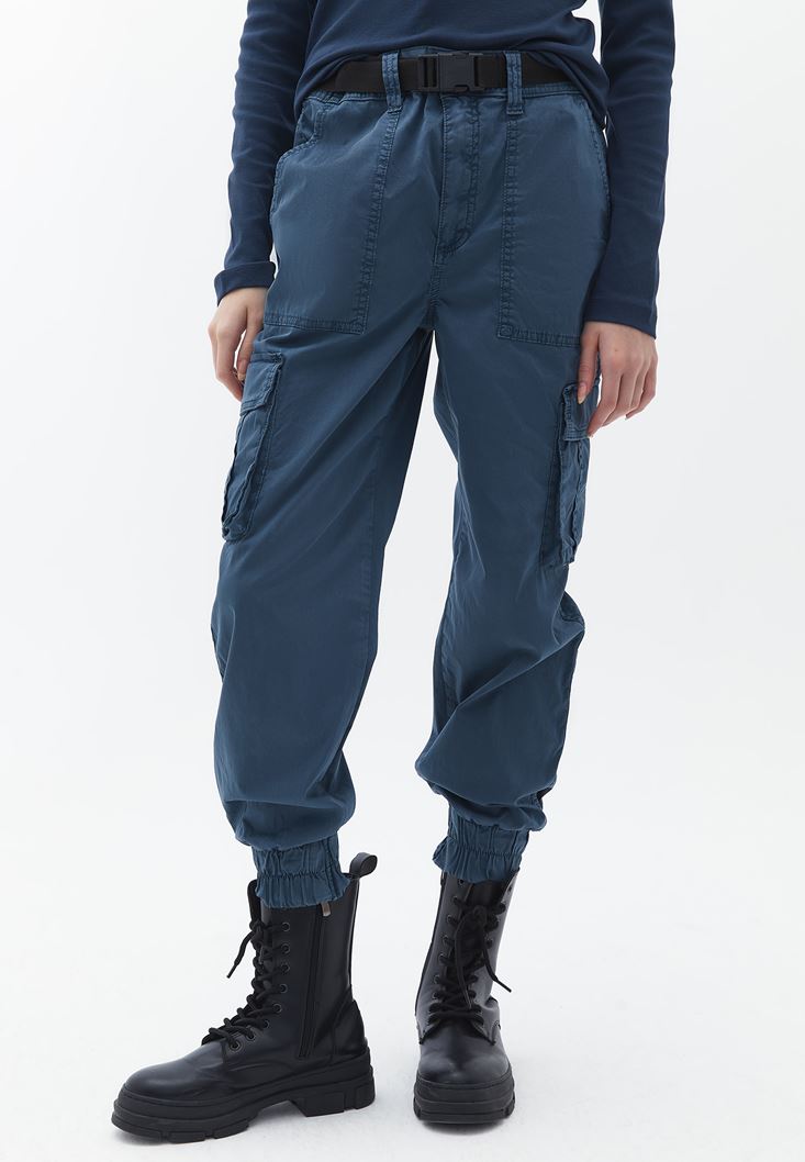 Pamuk içerikli özel doku, orta bel, bedenden uzak baggy fit, jogger paça, kemerli, kargo cepli, bilekte biten paça boyu.