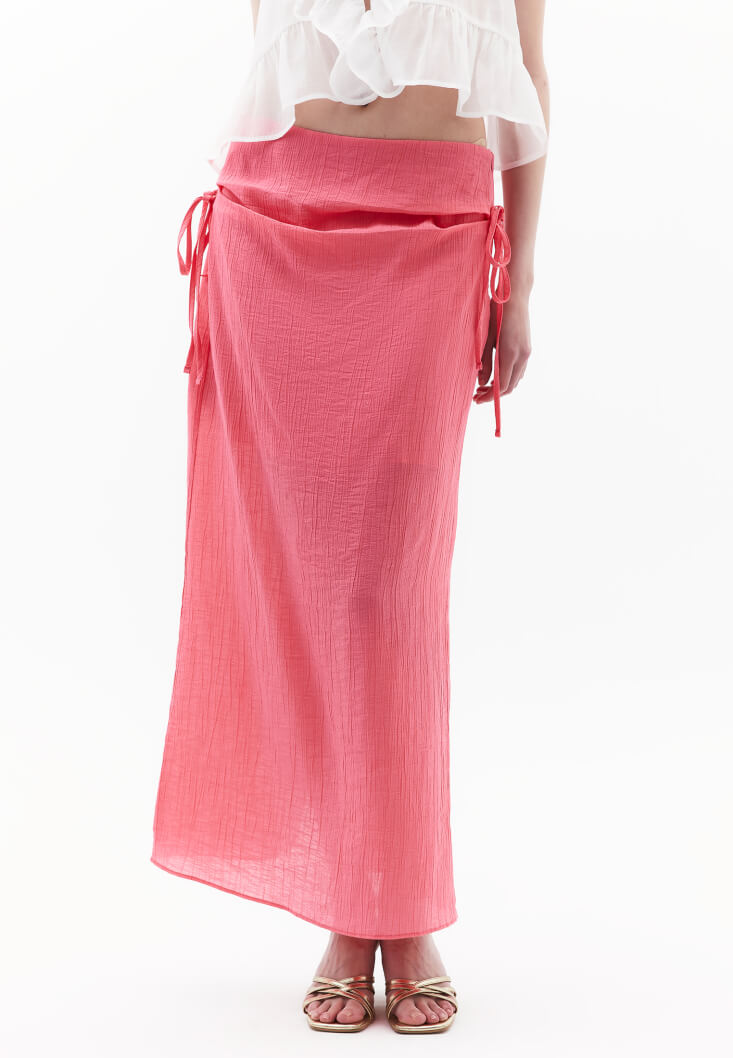 • Bayan Pembe Orta Bel Kurdele Detaylı Uzun Etek ( TENCEL™ )