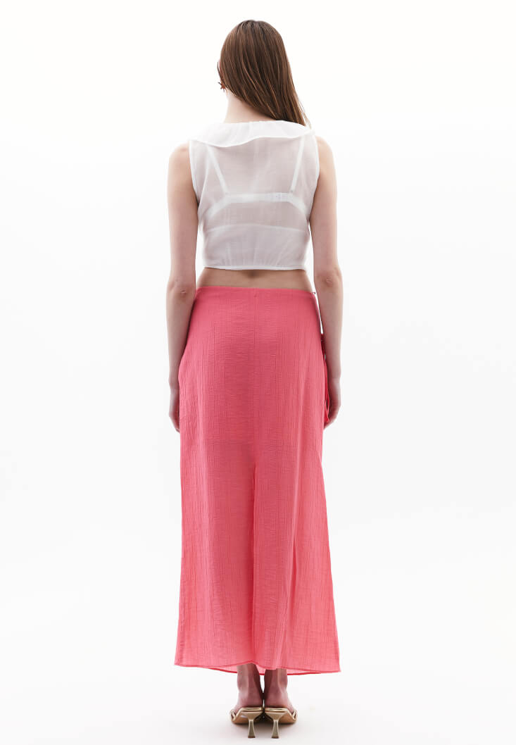 Pembe Orta Bel Kurdele Detaylı Uzun Etek ( TENCEL™ )