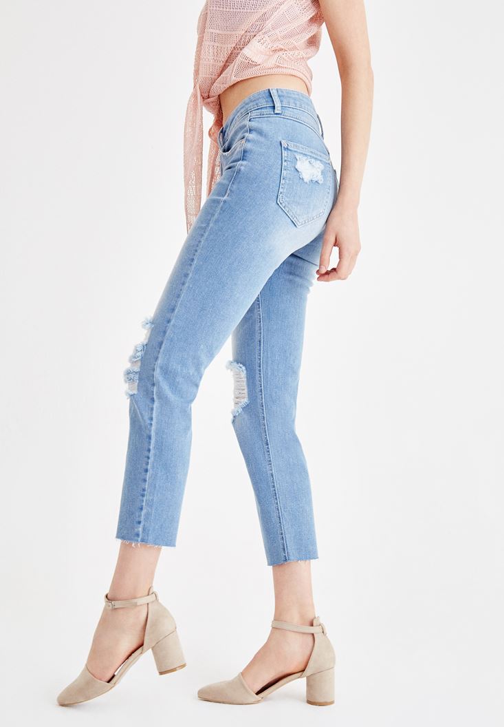 • Bayan Mavi Orta Bel Paça Detaylı Jean