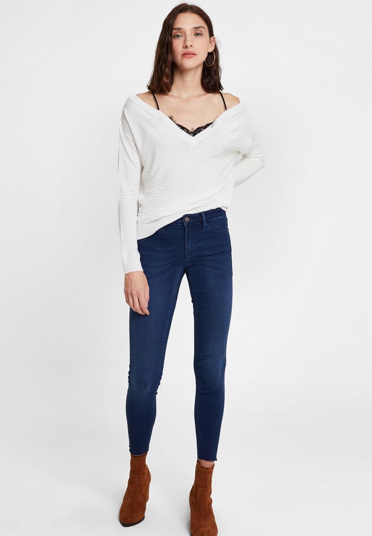 • Bayan Lacivert Orta Bel Paça Detaylı Skinny Pantolon