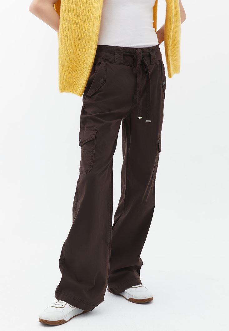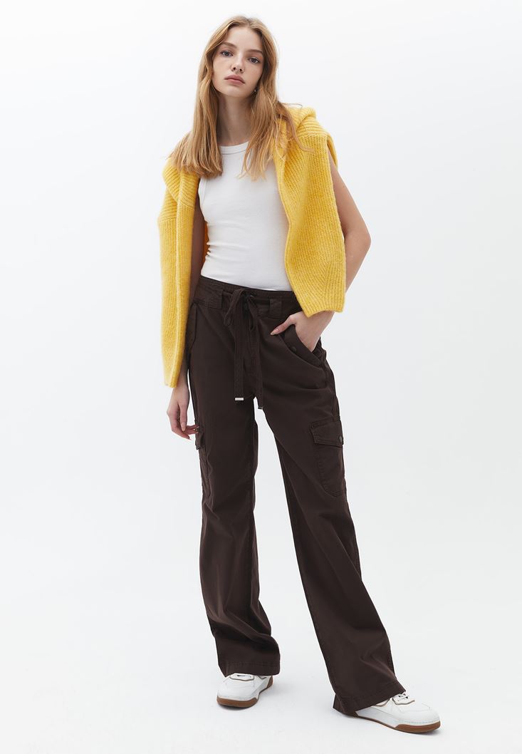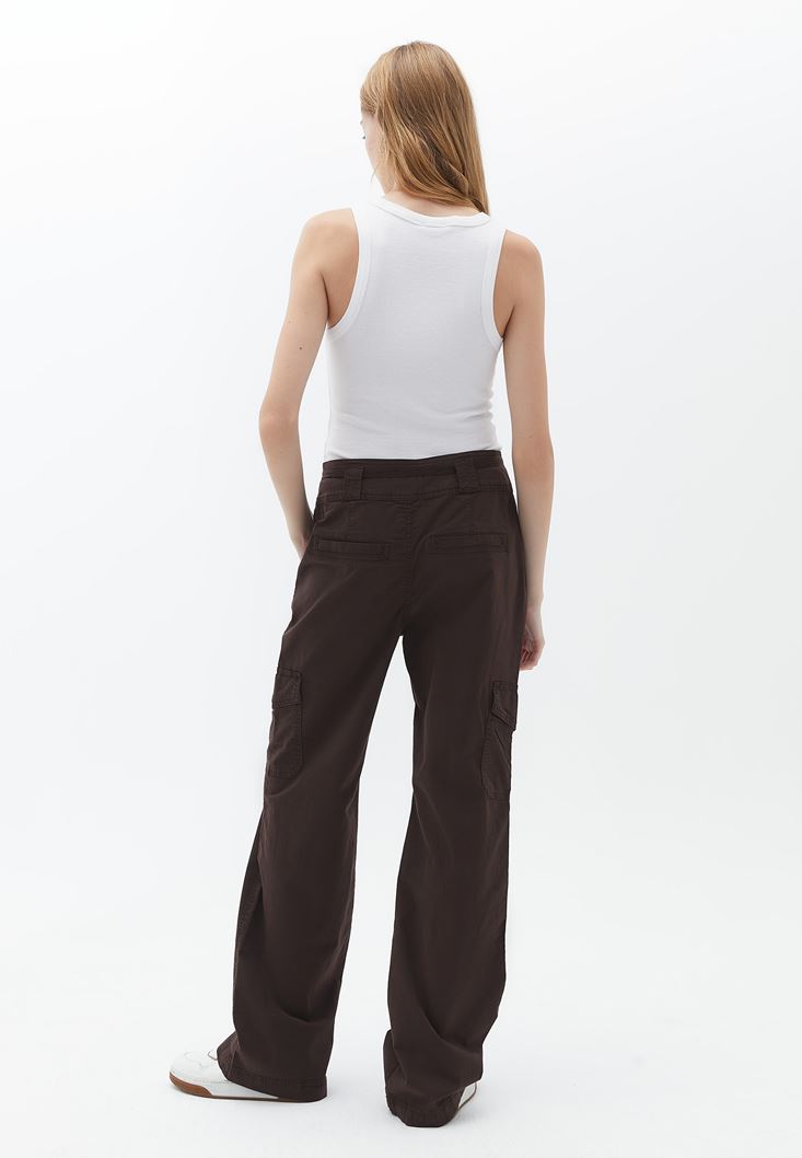 • Bayan Kahverengi Orta Bel Pamuklu Kargo Pantolon