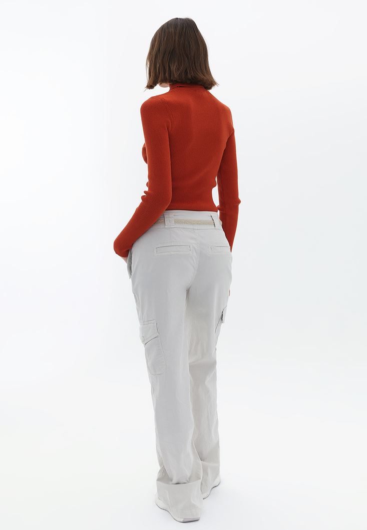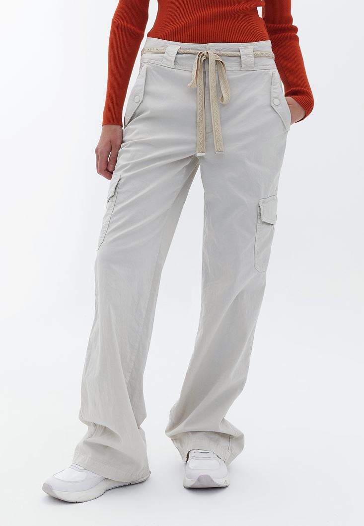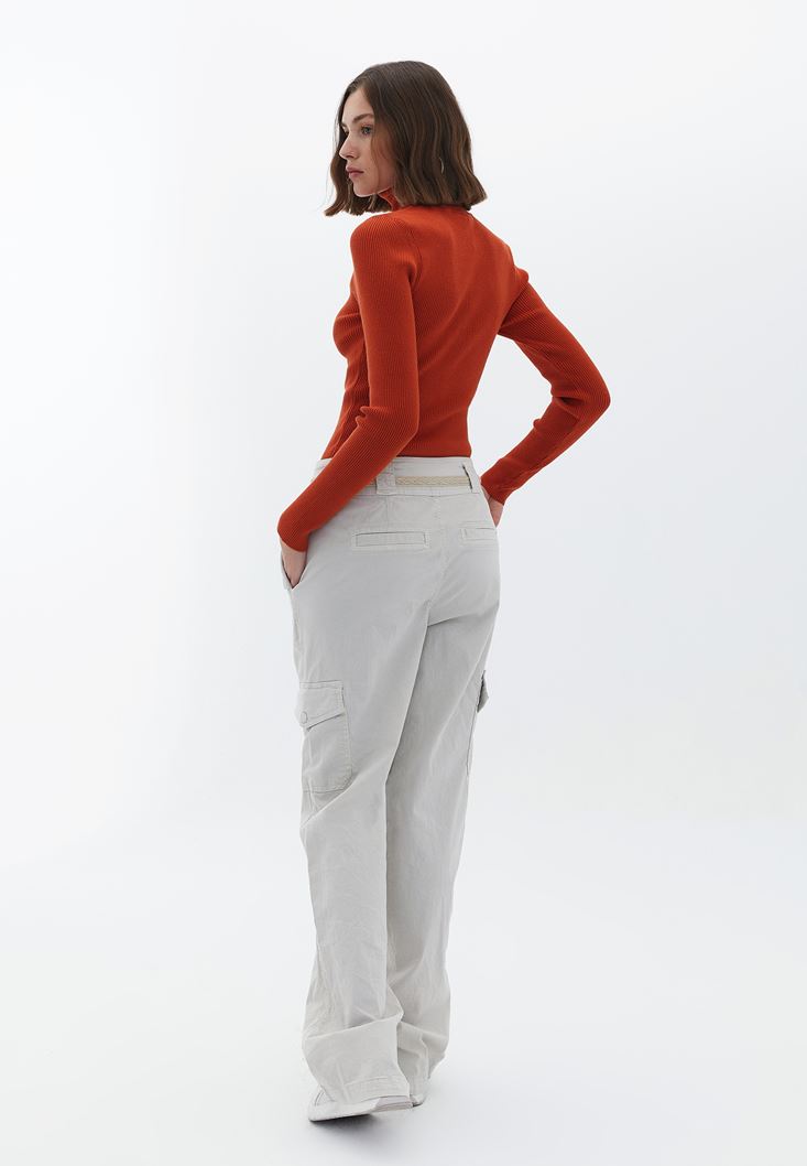 Krem Orta Bel Pamuklu Kargo Pantolon