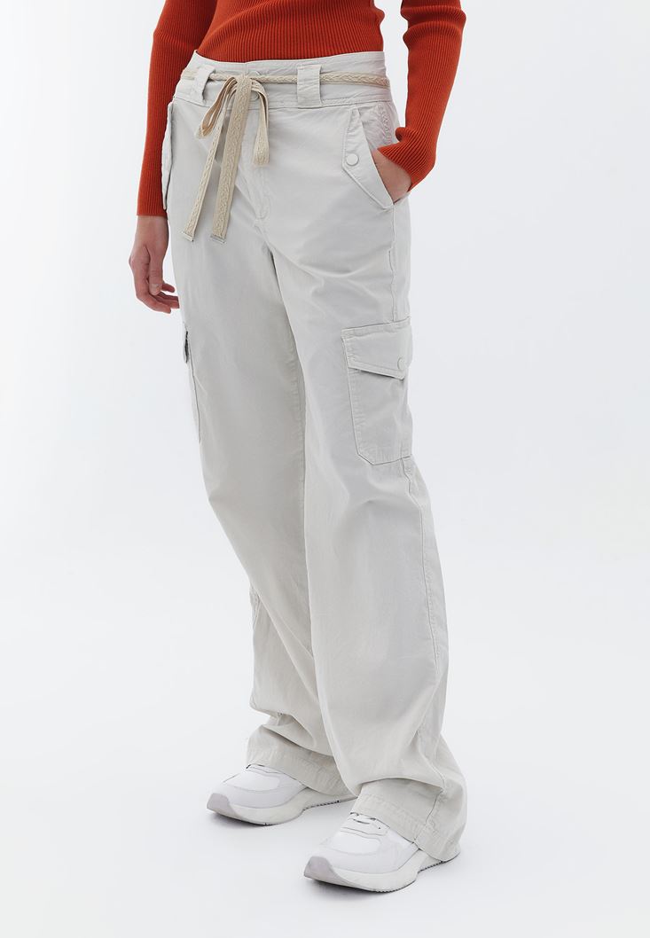 • Bayan Krem Orta Bel Pamuklu Kargo Pantolon