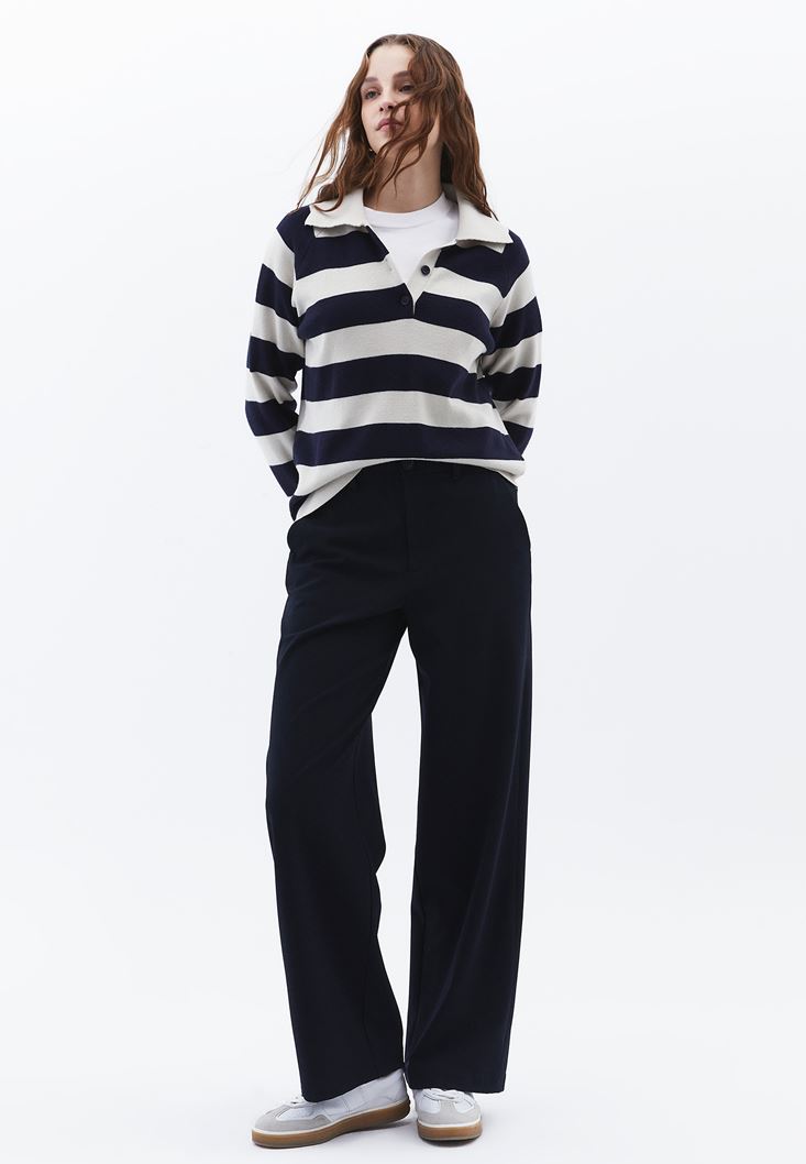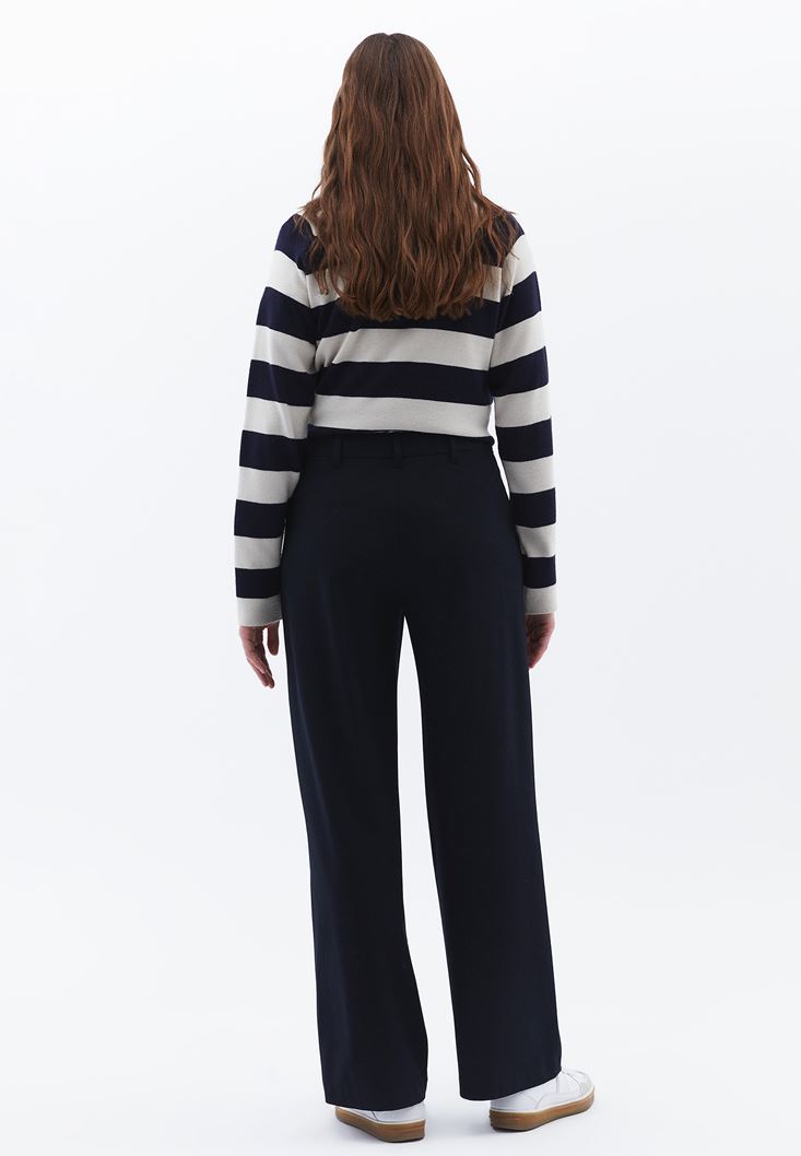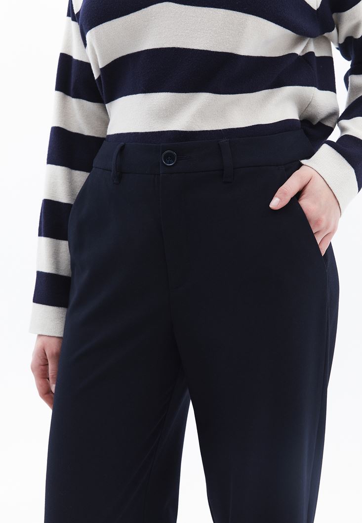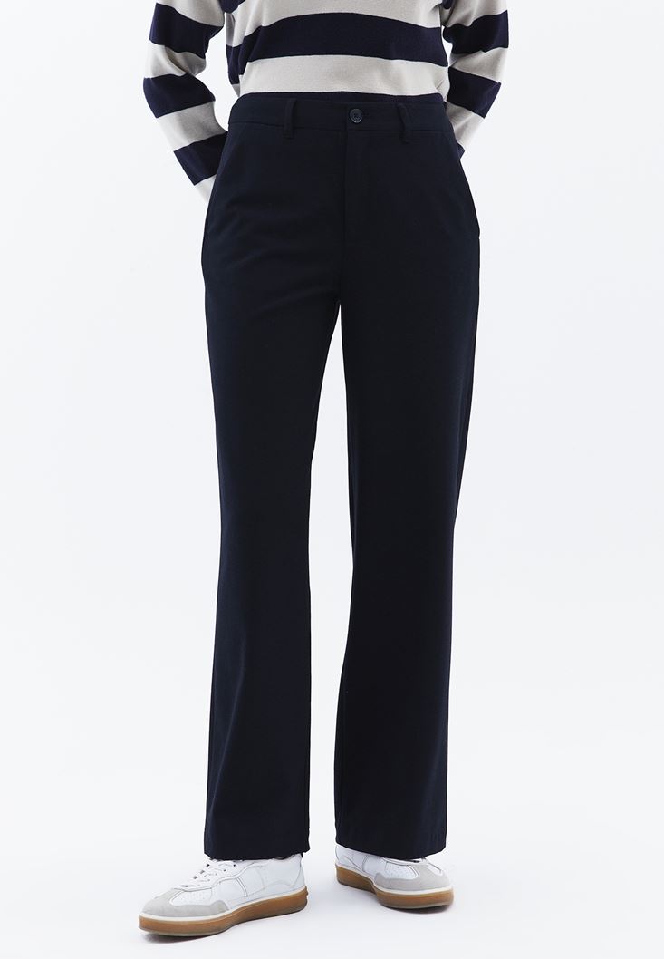 • Bayan Lacivert Orta Bel Straight-Fit Pantolon