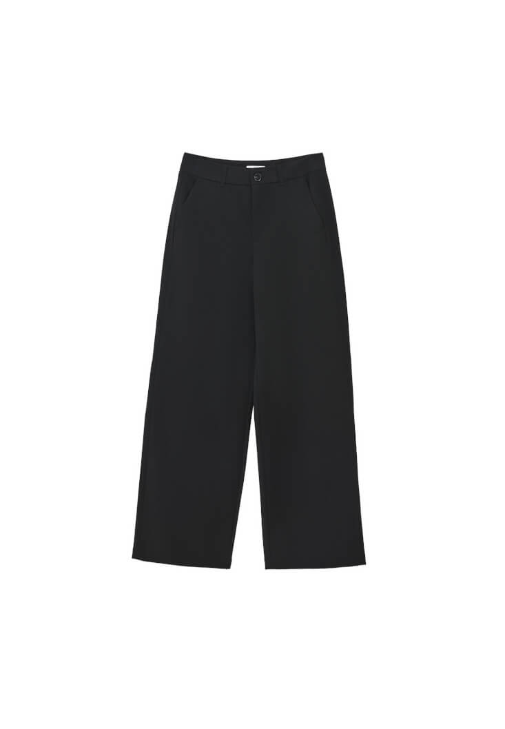 • Bayan Siyah Orta Bel Straight-Fit Pantolon