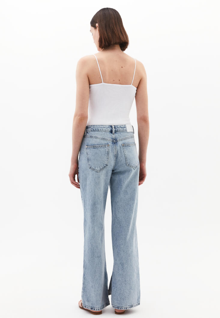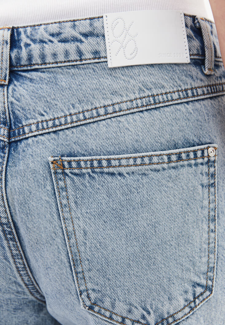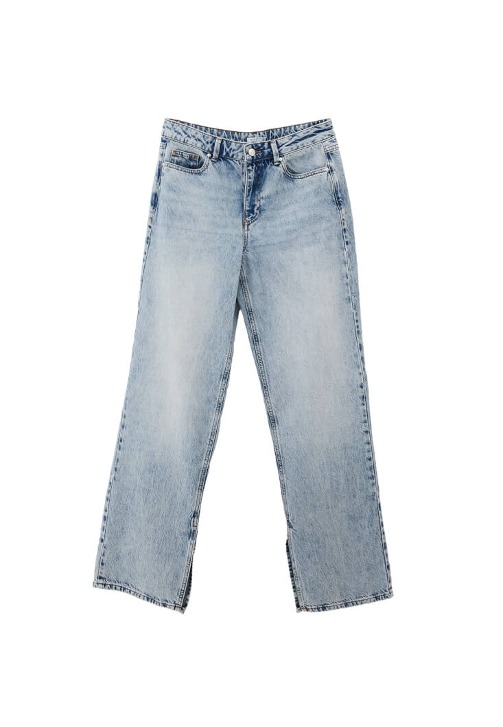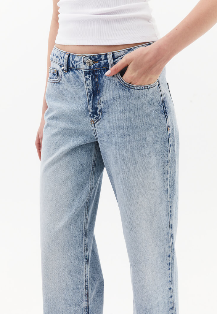 %100 pamuklu denim, orta bel, straight fit, düz paça, bedene yakın rahat fit, önü ve arkası ikişer cepli, yıkamalı görünüm.