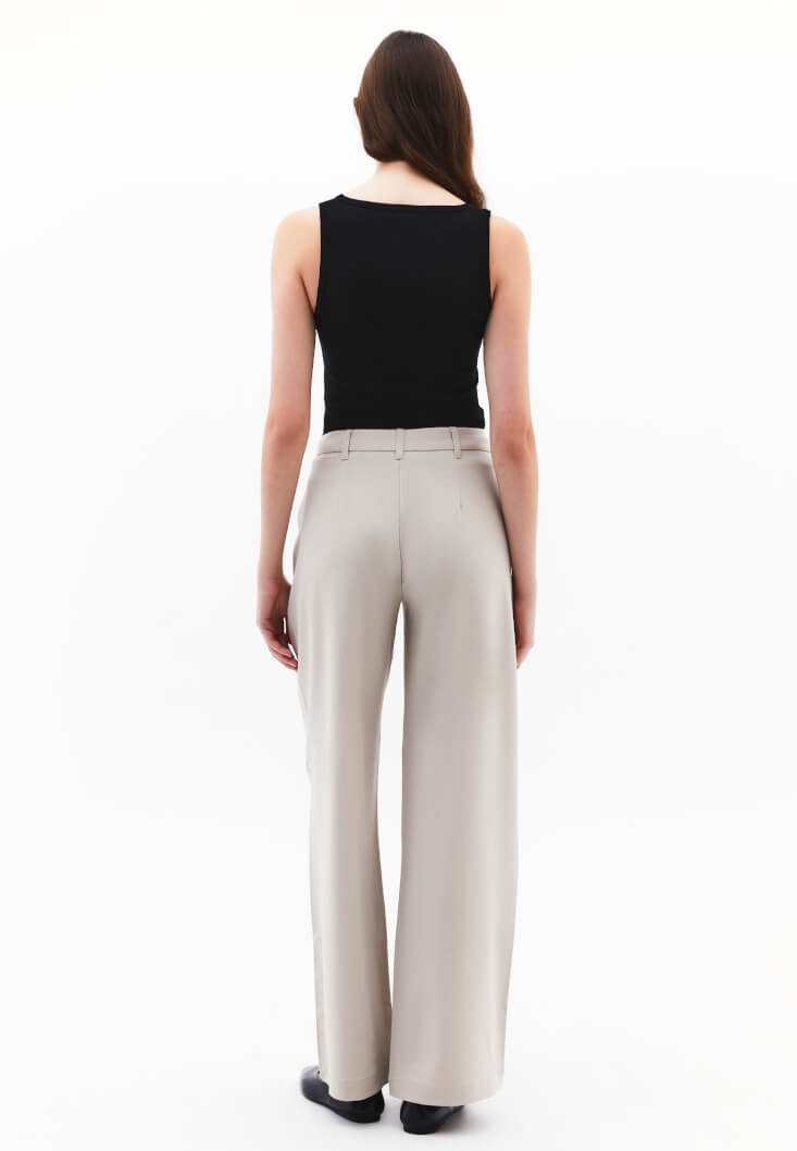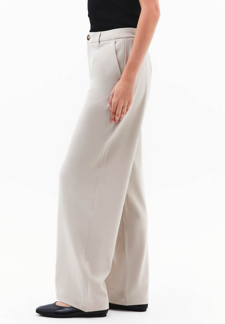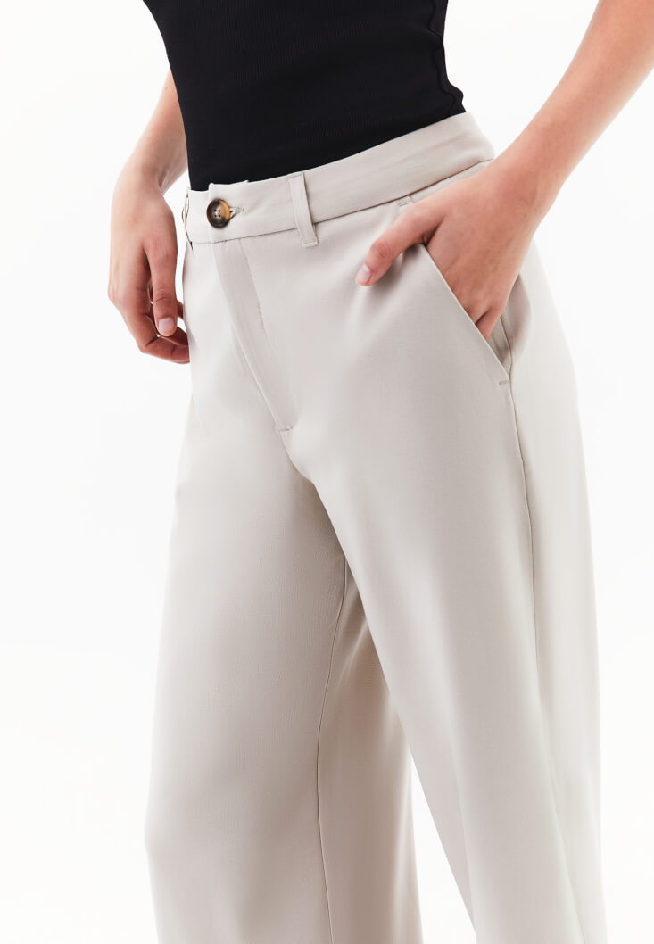 • Bayan Bej Orta Bel Straight-Fit Pantolon