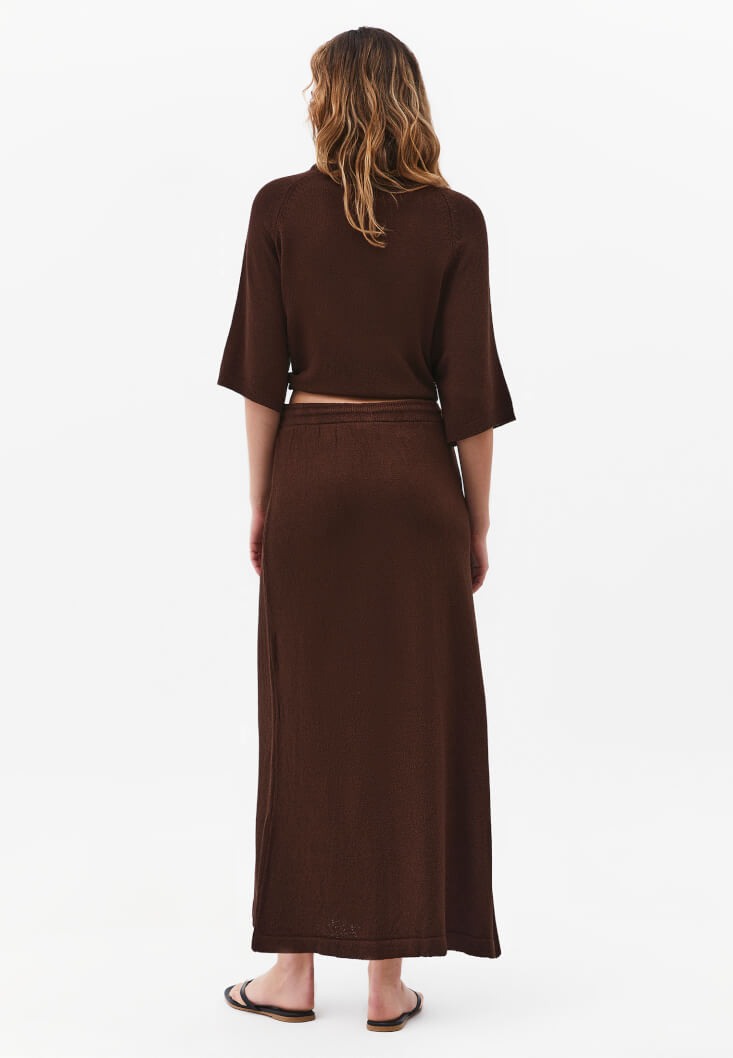 Kahverengi Orta Bel Triko Etek