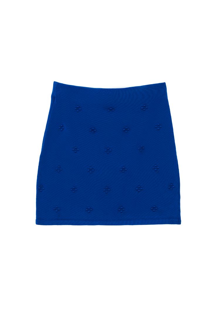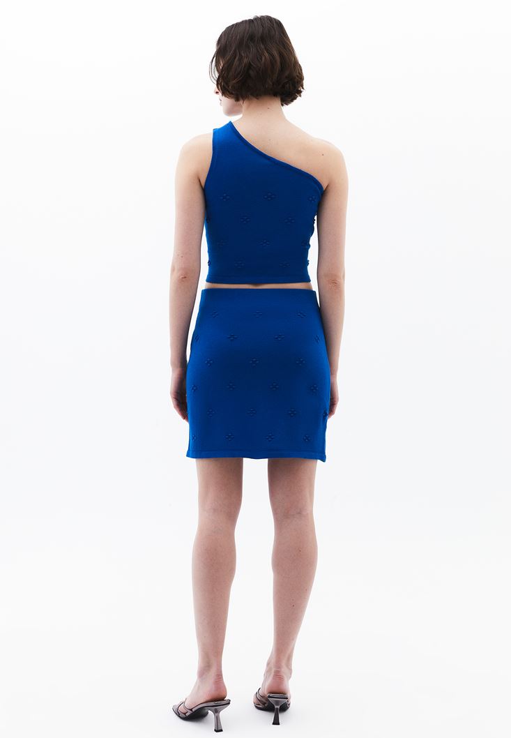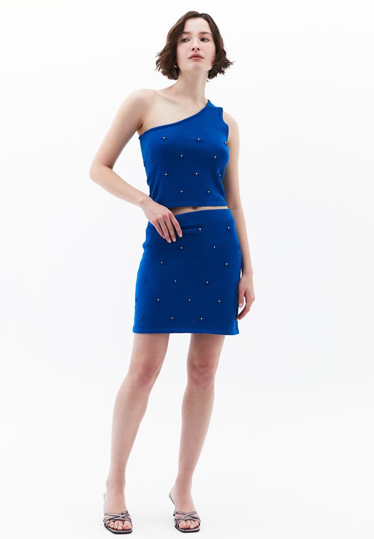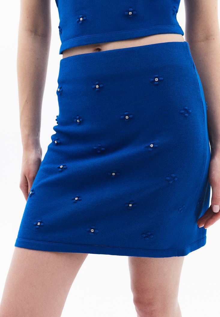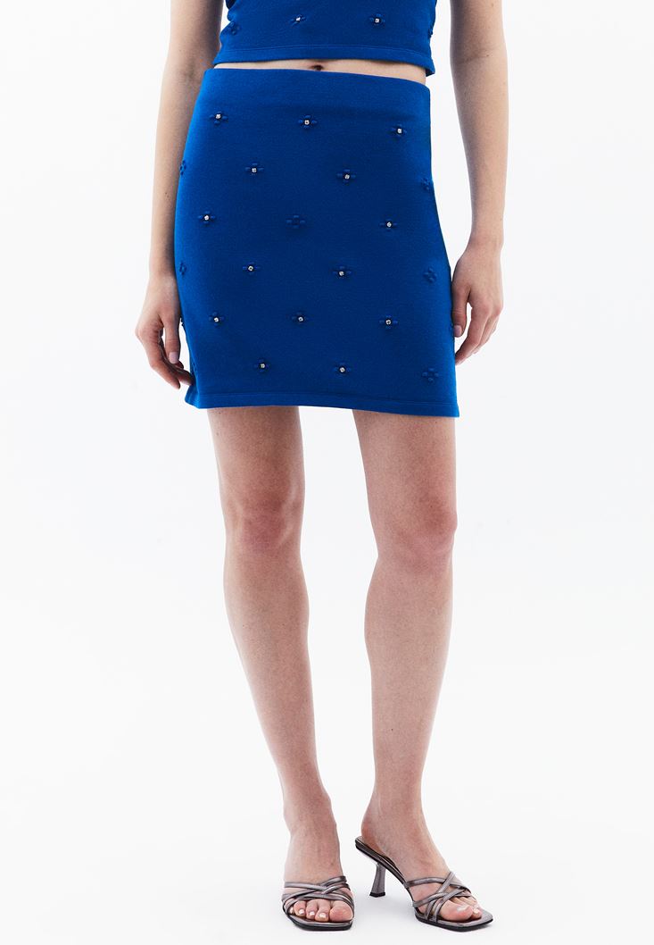 • Bayan Mavi Orta Bel Triko Mini Etek