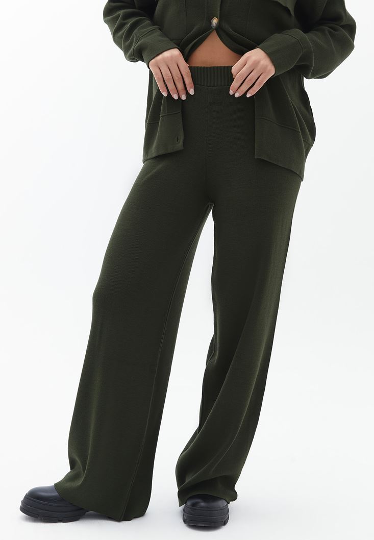 • Bayan Yeşil Orta Bel Triko Pantolon