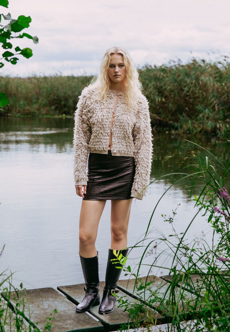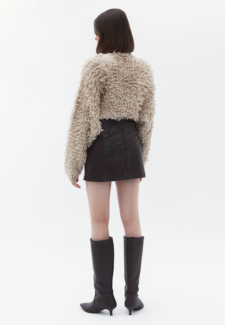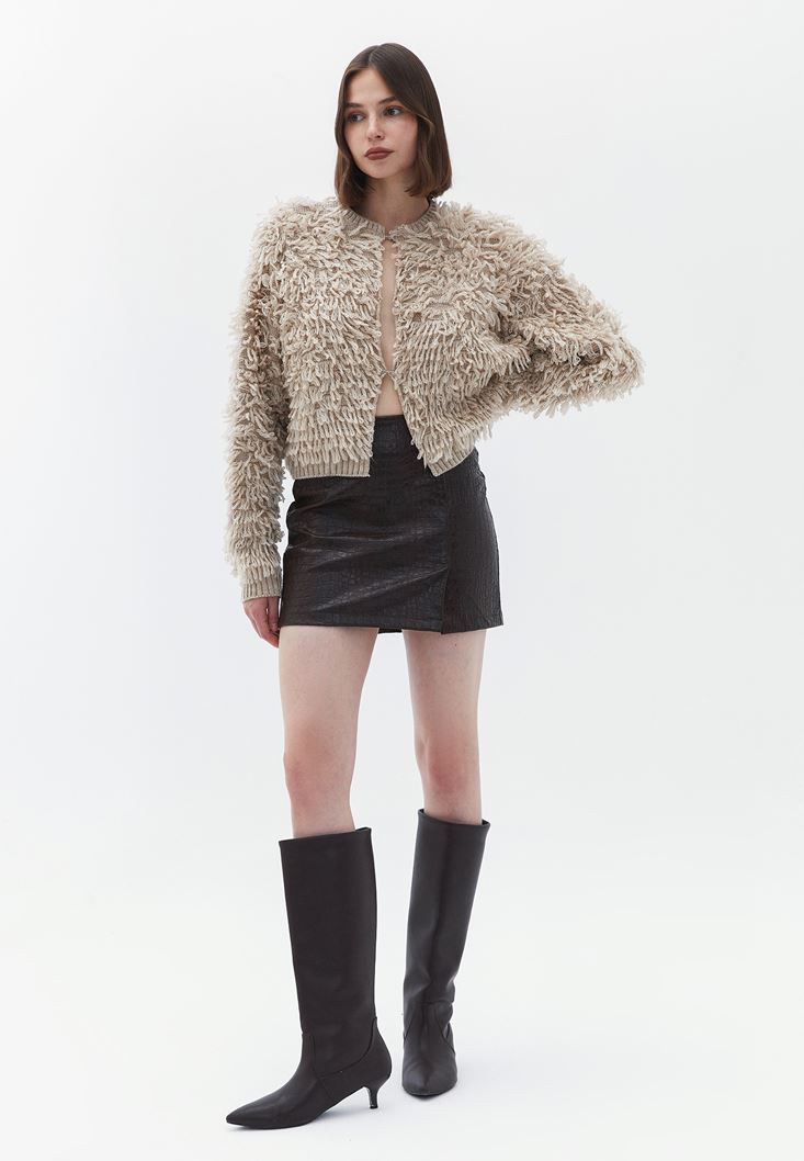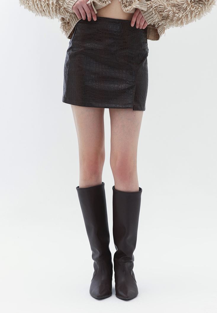 Kahverengi Orta Bel Vegan Deri Mini Etek